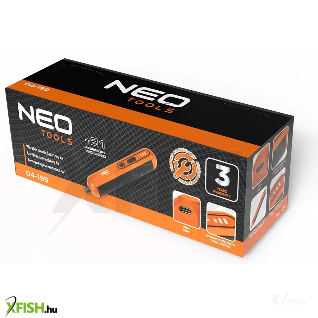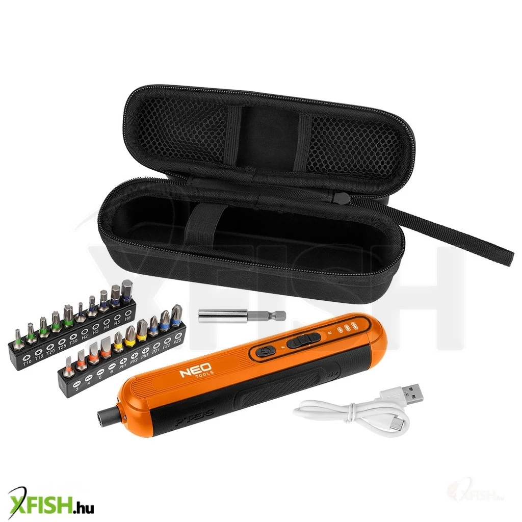 KategóriákKategóriákBarkácsolás, építkezés Csavarhúzó, szerszámkészlet Neotools akkus csavarhúzó készlet, 4v, li-ion akku, usb-c töltő, 20bit, tok
