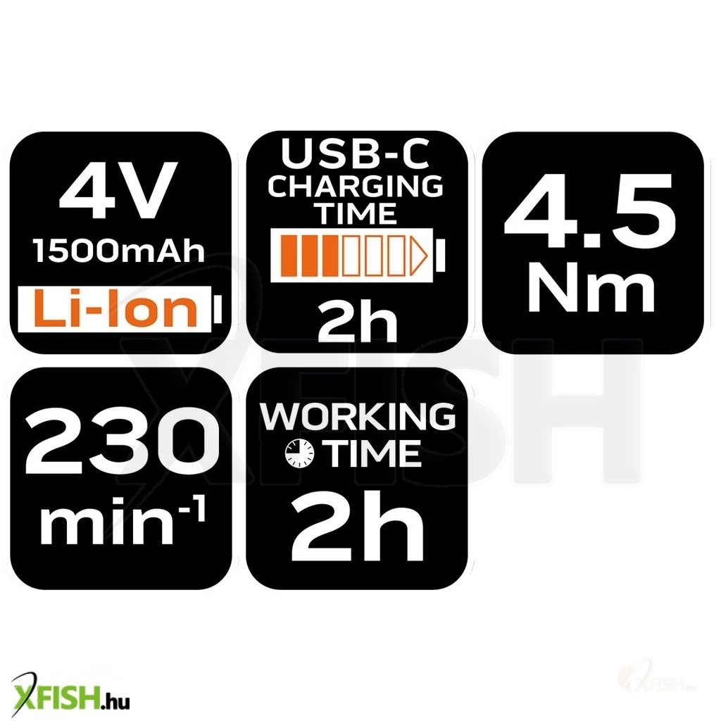 A Neotools 4V-os akkumulátoros csavarhúzó készlete a tökéletes eszköz minden barkácsoló, lakberendező vagy villanyszerelő számára, aki megbízható segítséget keres a mindennapi feladatokhoz. Ez a kiváló minőségű készlet a hatékony és hosszú távú teljesítmény érdekében került kialakításra. A 4 V feszültségű és 1500 mAh kapacitású akkumulátor hosszú, akár 55 perc munkaidőt biztosít, így megkönnyíti a munkát anélkül, hogy gyakran újra kellene tölteni. Az akkumulátor teljes feltöltése mindössze 230 percet vesz igénybe, így minimalizálva az állásidőt.