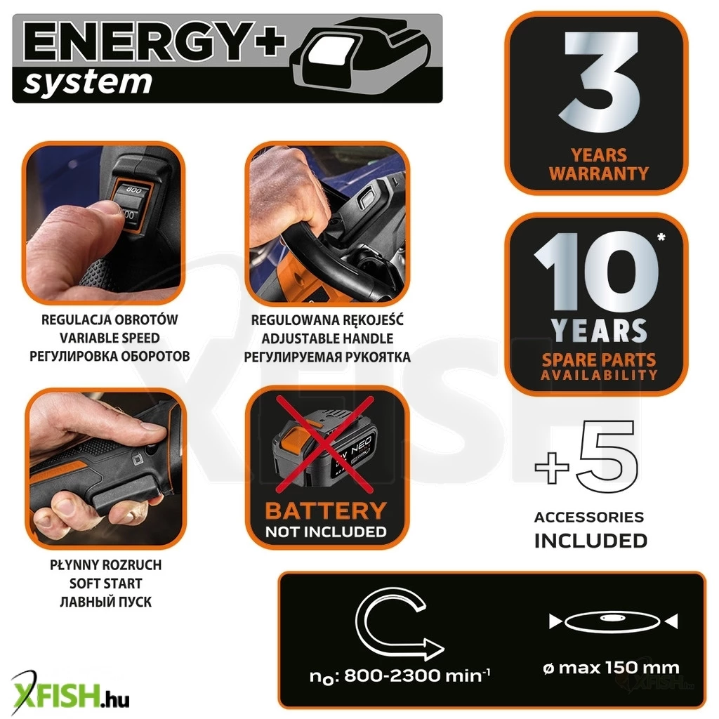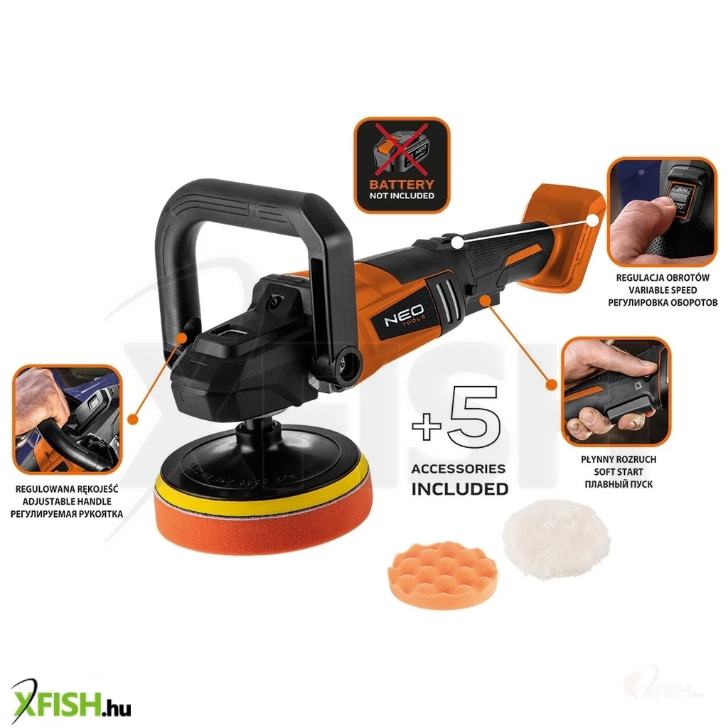Neotools akkus polírozó, energy+ 18v, m14 150mm, 800-2300 rpm, akku nélkül!!!