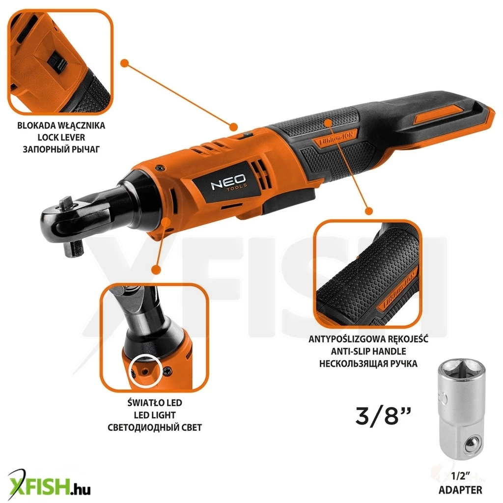 KategóriákKategóriákBarkácsolás, építkezés Speciális barkácsgépek Neotools akkus racsnis kulcs, energy+ 18v, 3/8-os 1/2-os adapterrel, akku nélkül!!!