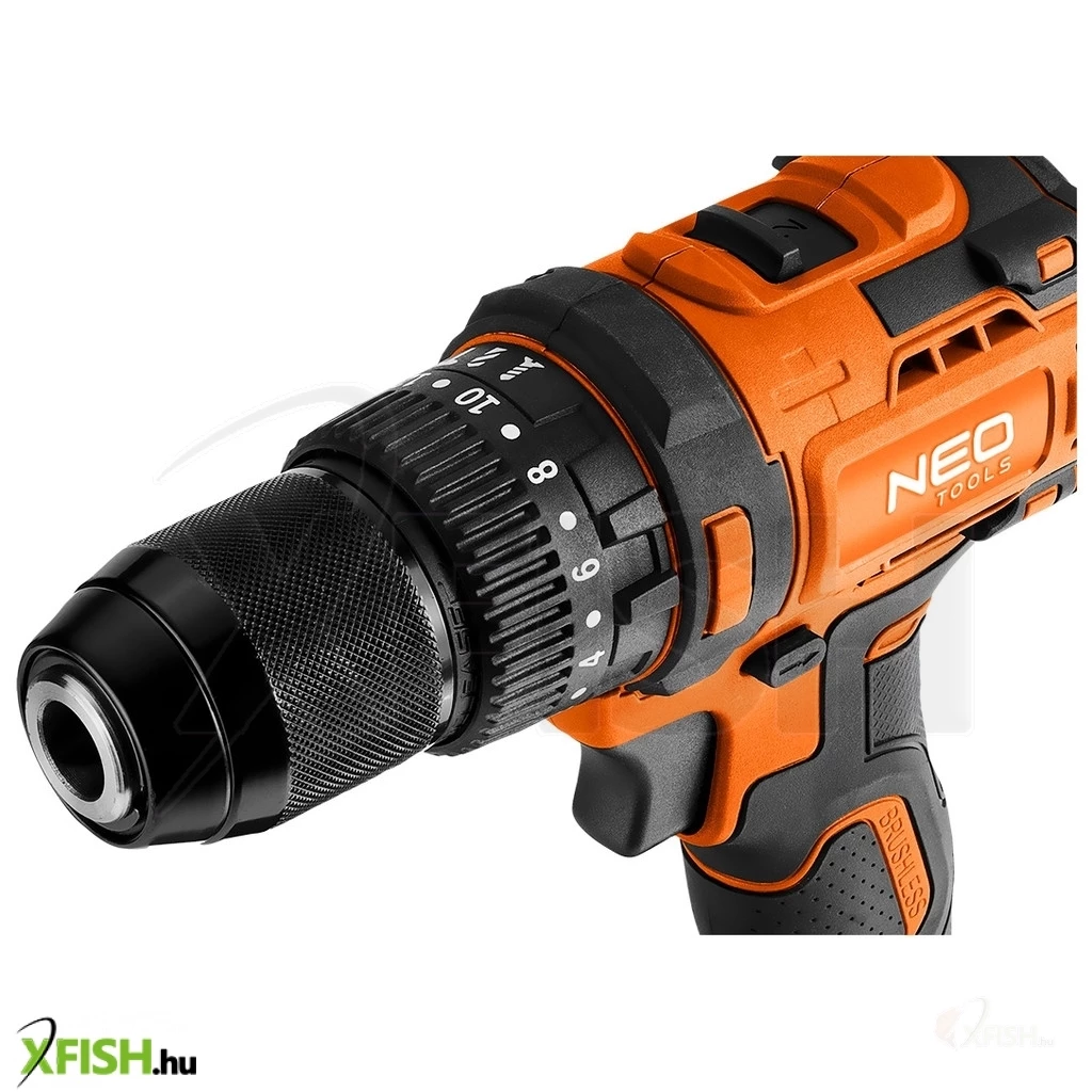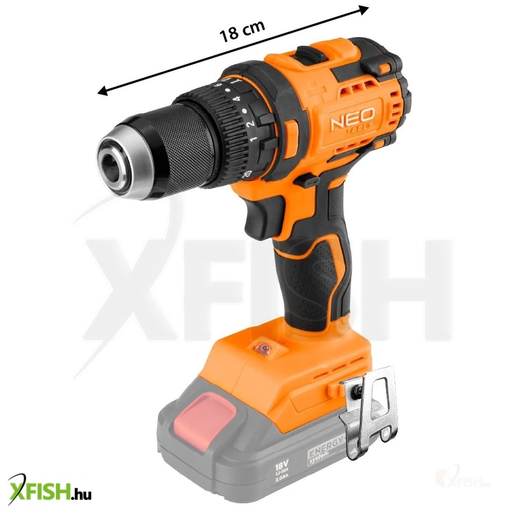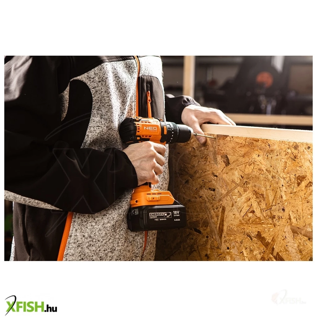 Neotools akkus szénkefementes fúró, csavarozó, ütvefúró, energy+, 18v , 95 nm, kompakt méret, 13mm fém tokmány, akku nélkül