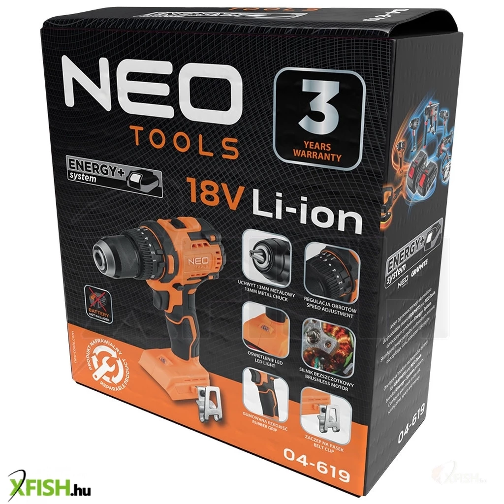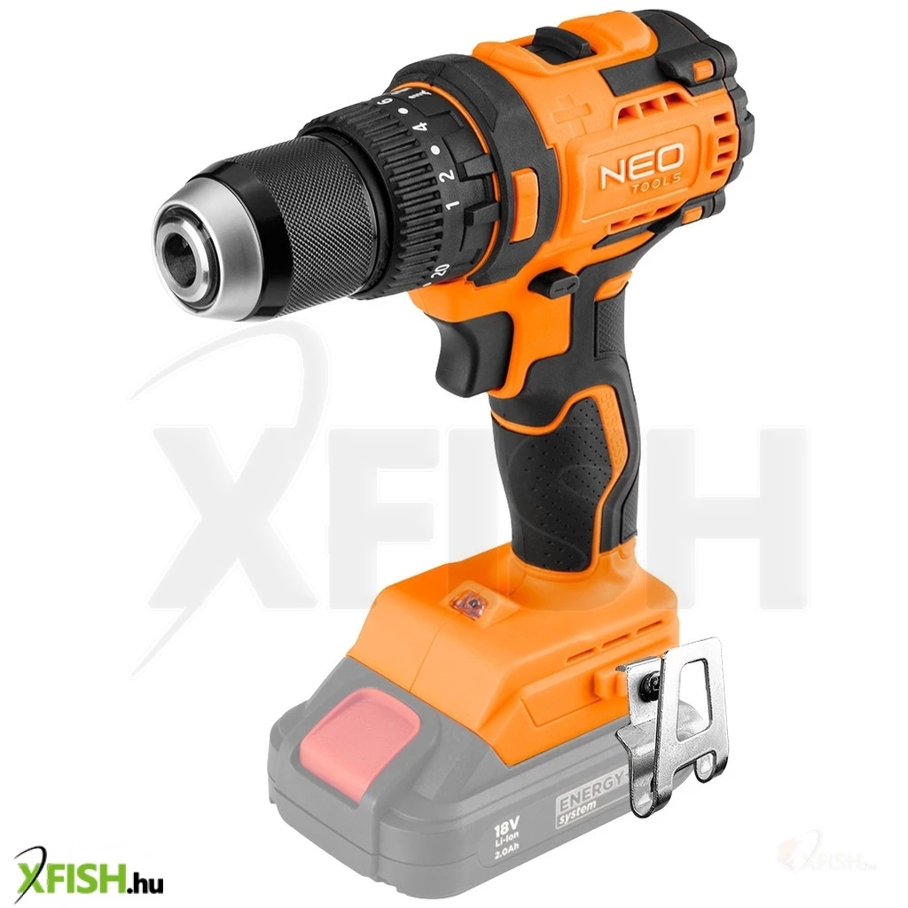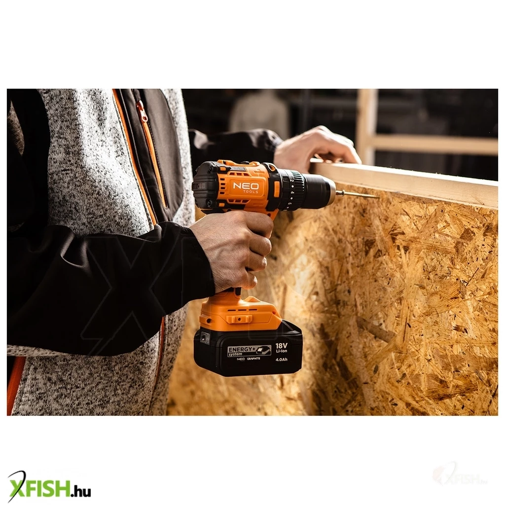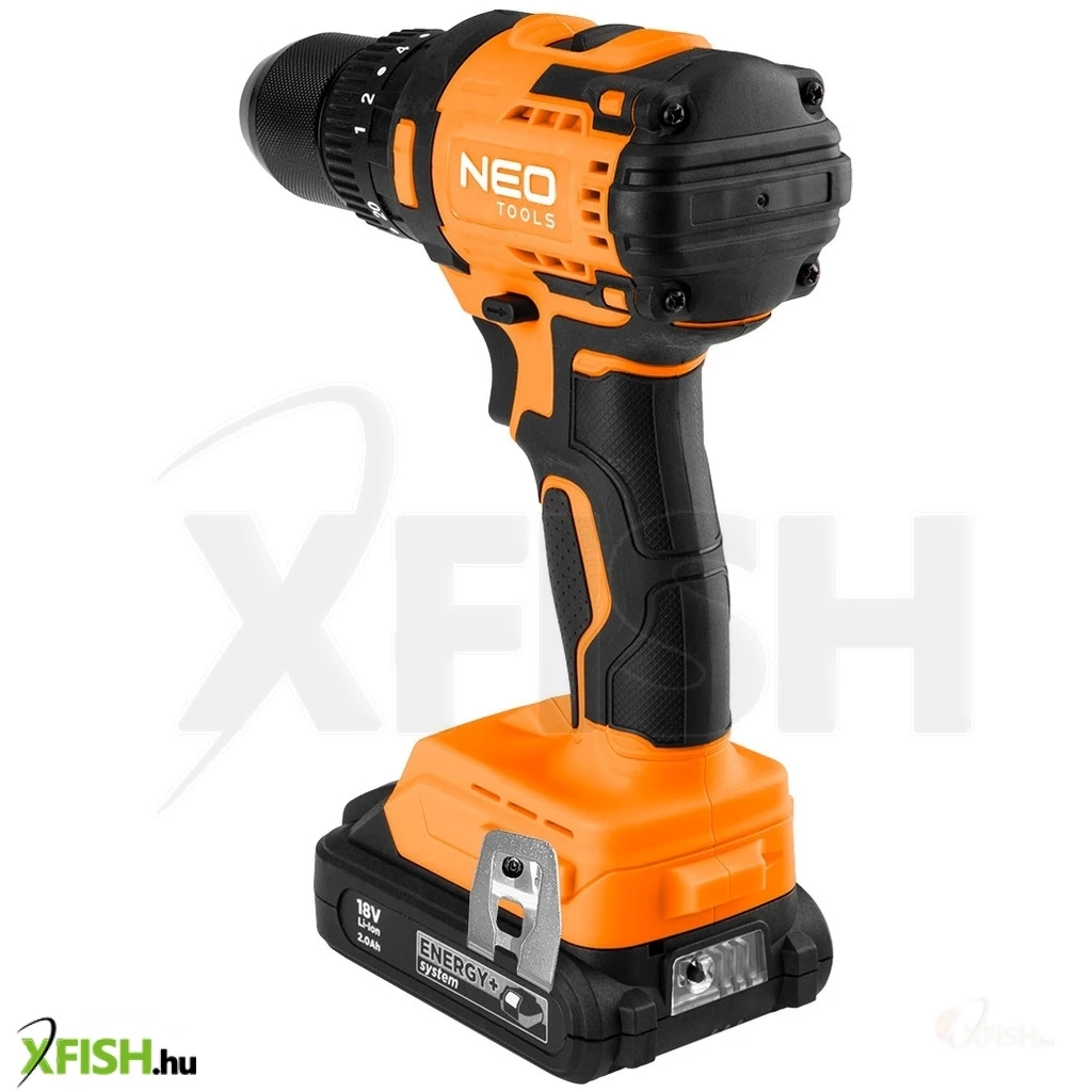 Neotools akkus szénkefementes fúró, csavarozó, ütvefúró, energy+, 18v , 95 nm, kompakt méret, 13mm fém tokmány, akku nélkül
