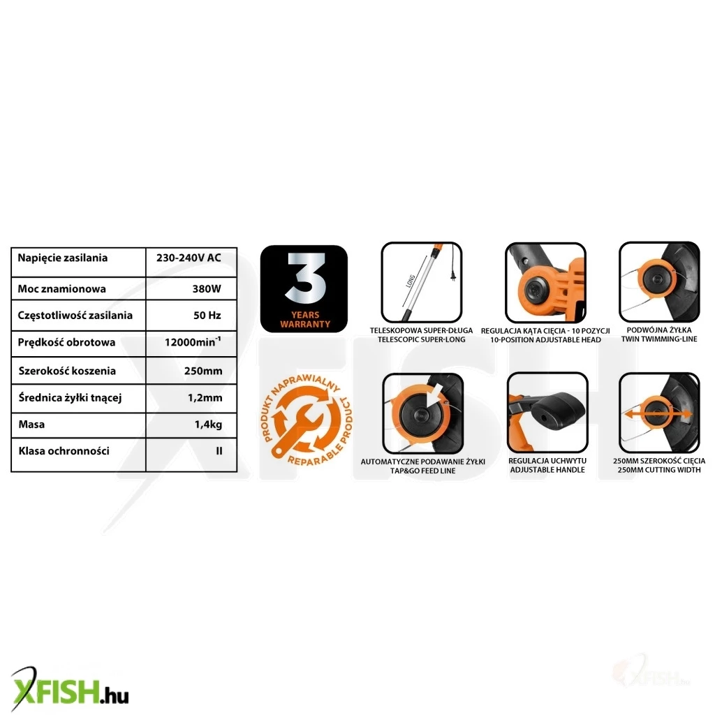 A teleszkópos nyél lehetővé teszi, hogy a szegélynyírót az Ön számára legkényelmesebb magasságba állítsa, csökkentve ezzel a fizikai megterhelést hosszas használat esetén. A 380W-os motor elegendő erőt biztosít ahhoz, hogy akár sűrűbb fűben is akadálytalanul dolgozhasson, garantálva a precíz és egyenletes vágást.