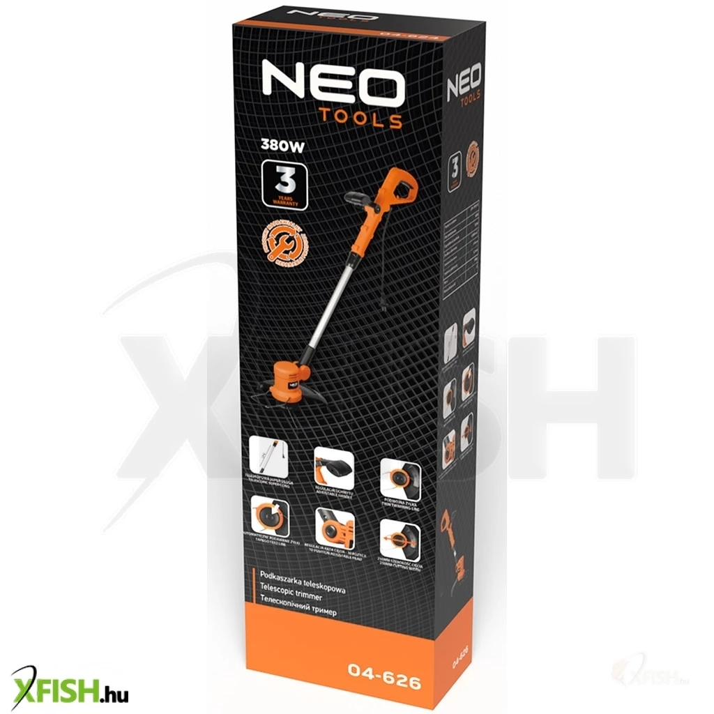 Neotools elektromos fűszegélynyíró 380w, teleszkópos nyél