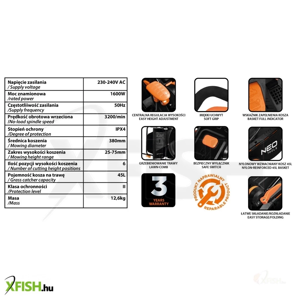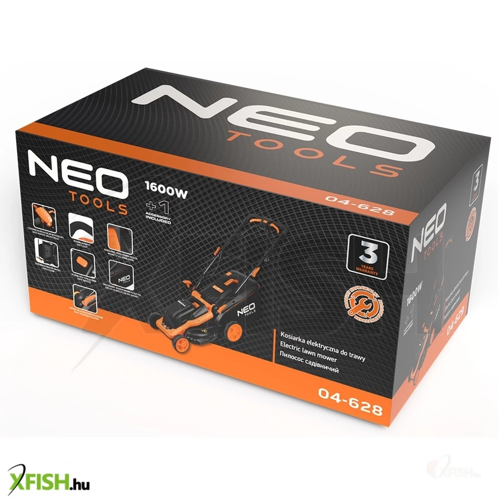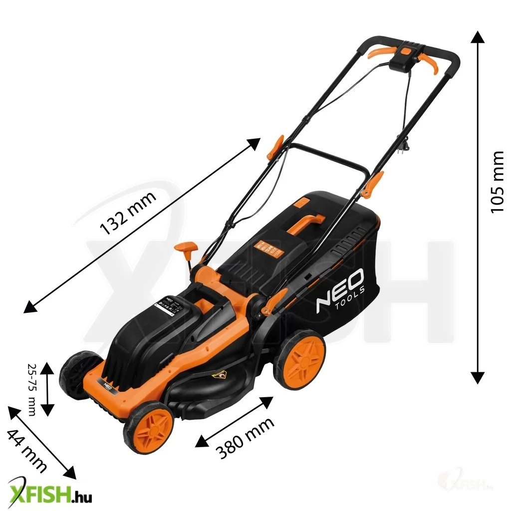 Neotools elektromos fűnyíró 1600w, 380mm, 45l-es gyűjtőkosár