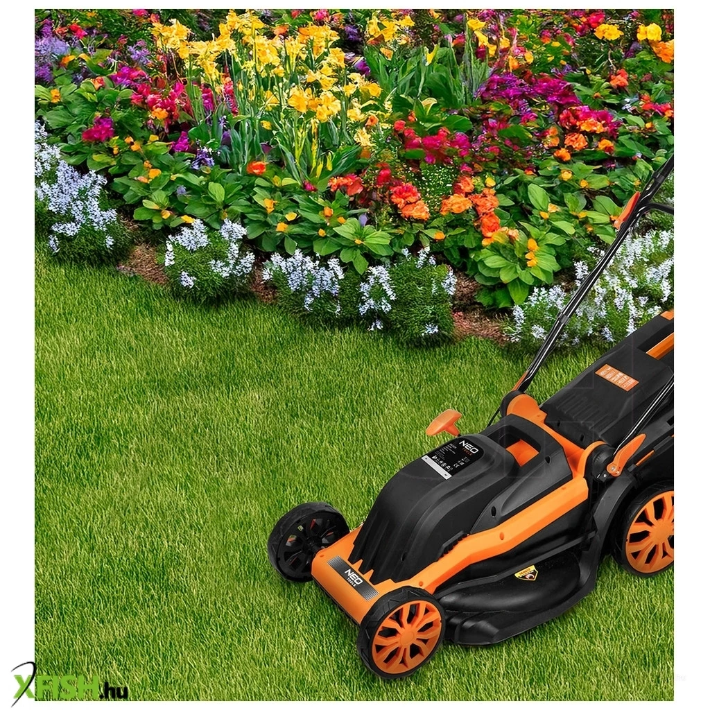 A 440 mm-es vágószélességgel a Neotools elektromos fűnyíró ideális választás a gyors munkavégzéshez, legyen szó egyenes vagy bonyolultabb formájú területekről. Kompakt kialakítása és a könnyű irányíthatóság az egyik legnagyobb előnye, amellyel az eszköz bármilyen kertben egyszerűen manőverezhető. Az ergonomikusan kialakított fogantyú kényelmes fogását biztosítja, csökkentve a fizikai terhelést a hosszabb időtartamú használat során.