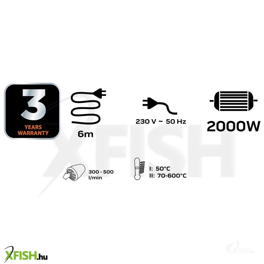 - Hőfokszabályzás: I 50°C, II 70°C - 600°C
