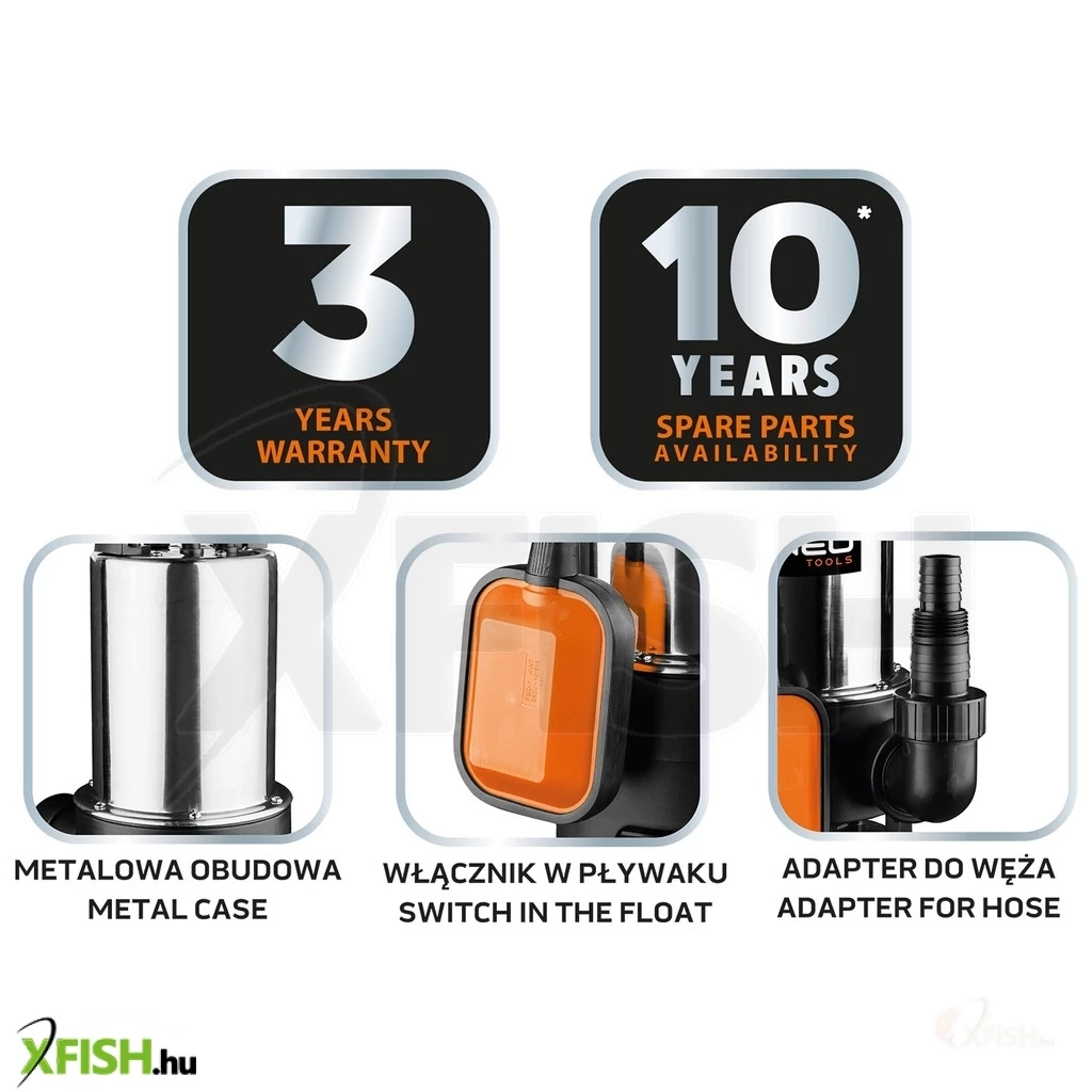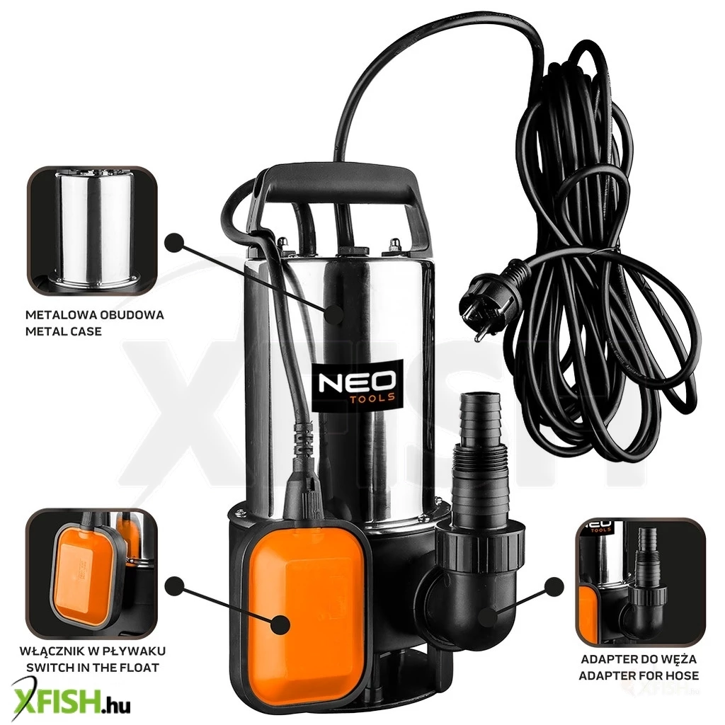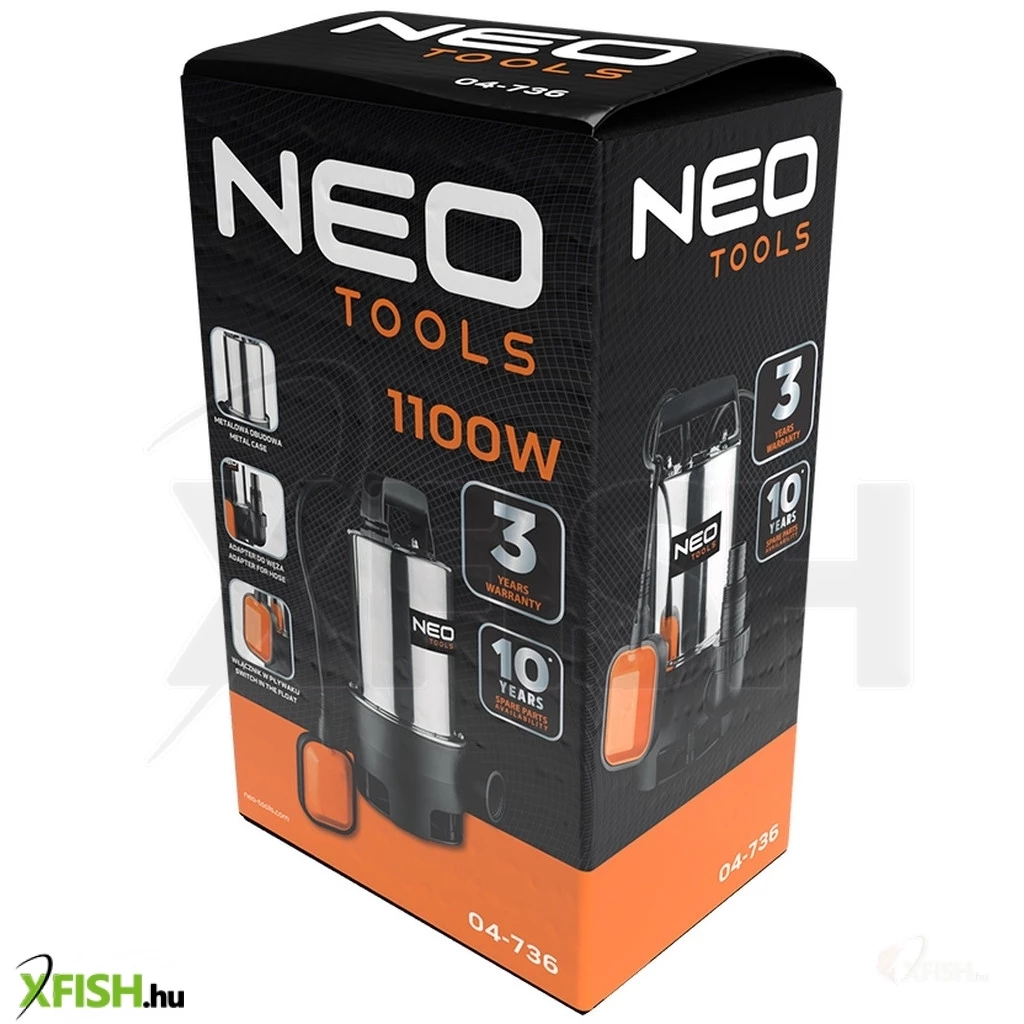Neotools szennyvízszivattyú, inox ház, 1100w, 18.000l/óra