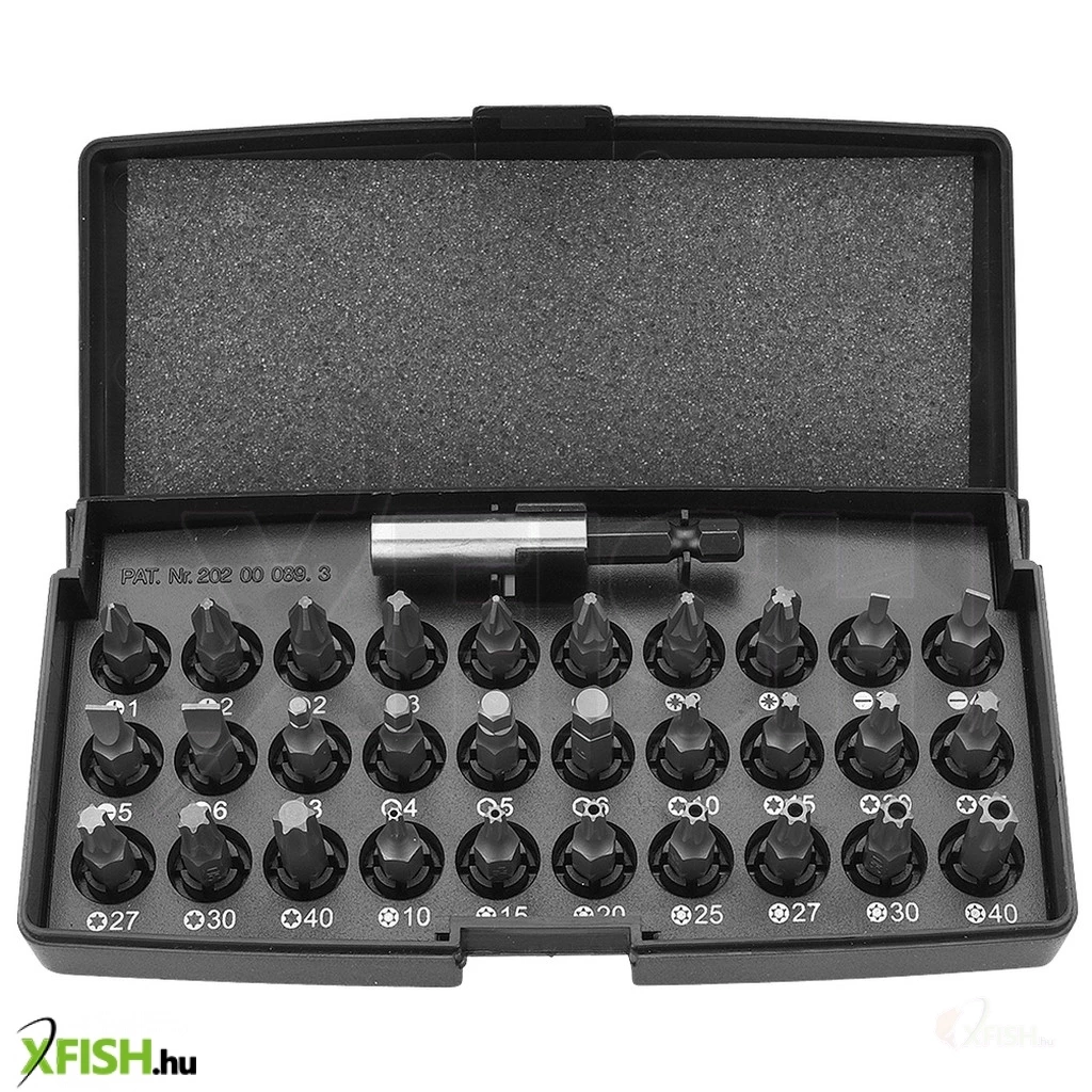 A 30 darab különböző típusú és méretű csavarhúzó bit mellett egy 60 mm hosszú, 1/4"-es mágneses bit befogószár is helyet kapott a készletben, megkönnyítve a bitek cseréjét és biztos tartást garantálva a munka során. Ezzel a sokoldalú szerszámkészlettel bármilyen csavarbehajtási feladat könnyedén és pontosan teljesíthető. A készlet részei között megtalálhatók a lapos, kereszt, PH, PZ, és torx bitek, valamint a furatos Torx és hatlapú bitek is, amelyek sokféle specifikus felhasználást tesznek lehetővé.