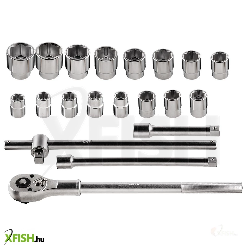 A készletben található 16 db hatlapú dugókulcs méretei széles választékát nyújtják a leggyakrabban használt méretezésű csavarfejeknek: 19 mm, 21 mm, 22 mm, 23 mm, 24 mm, 26 mm, 27 mm, 29 mm, 30 mm, 32 mm, 35 mm, 36 mm, 38 mm, 41 mm, 46 mm, és 50 mm. Ezek a dugókulcsok króm-vanádium (CrV) acélból készültek, amely hírnevét a tartósságának köszönheti, ellenáll a kopásnak és a rozsdának egyaránt, ezáltal hosszú élettartamot biztosít.