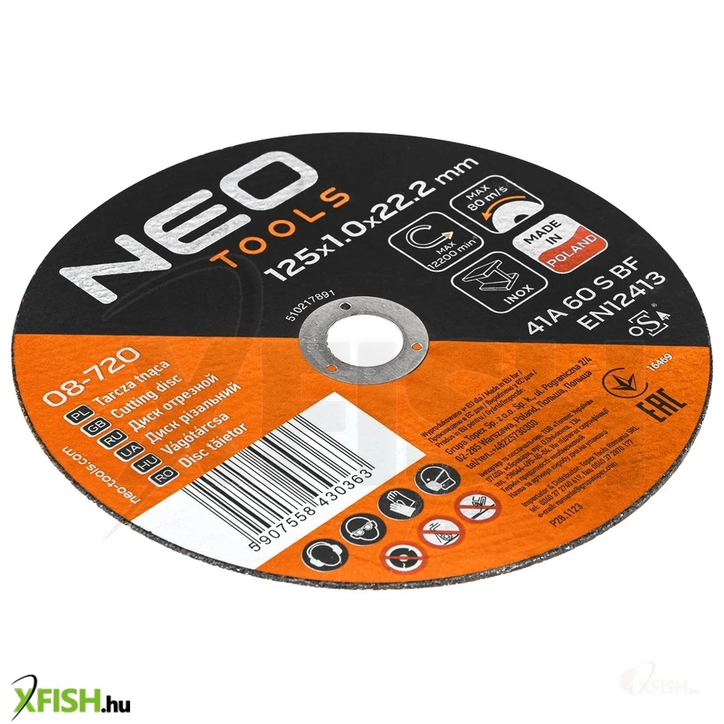 Neotools vágókorong, fémhez, 125x1x22,2mm, 41a 60 S bf inox, 25db/cs