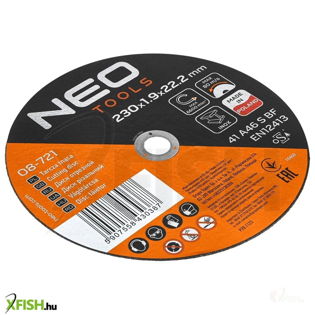 KategóriákKategóriákBarkácsolás, építkezés Fűrészek és gyalugépek Neotools vágókorong, fémhez, 230x1,9x22,2mm, 41a 46 S bf inox, 25db/cs