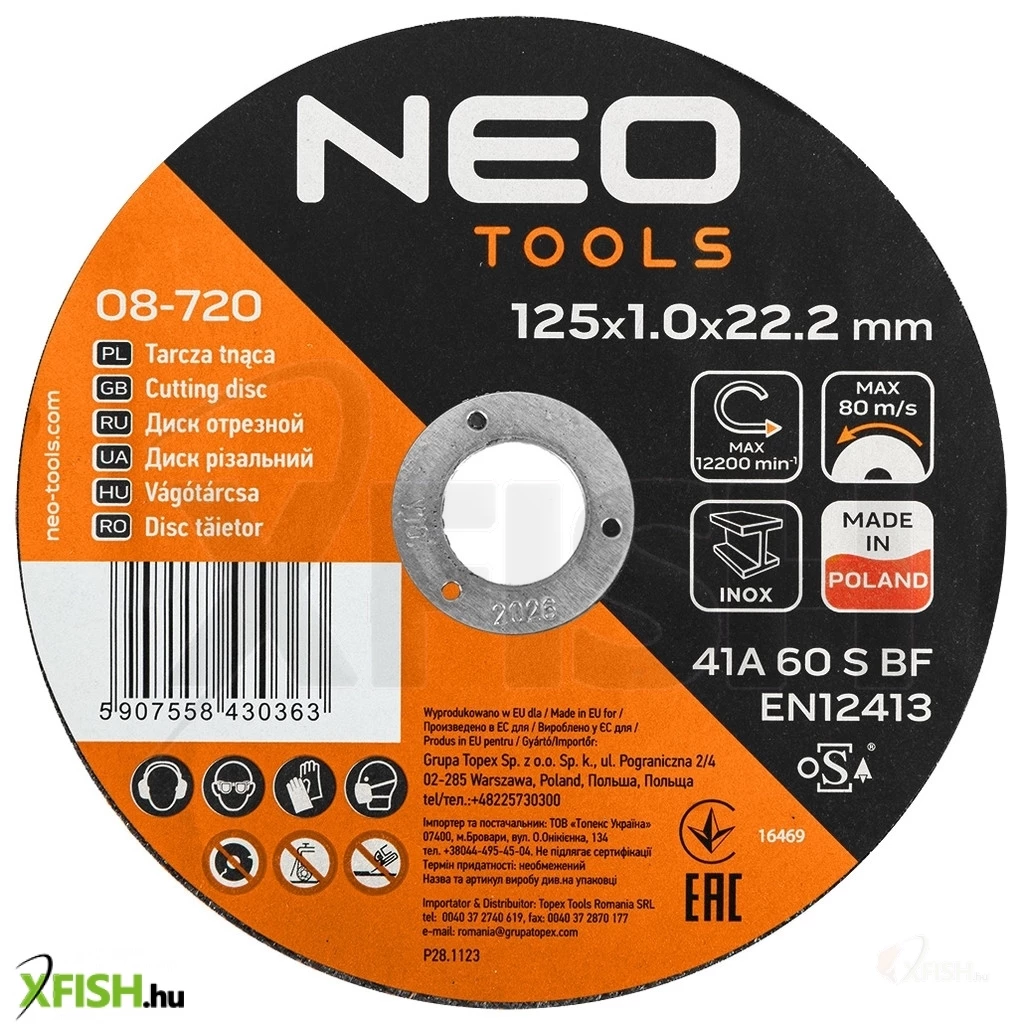 Neotools vágókorong, fémhez, 125x1x22,2mm, 41a 60 S bf inox, 100db/cs