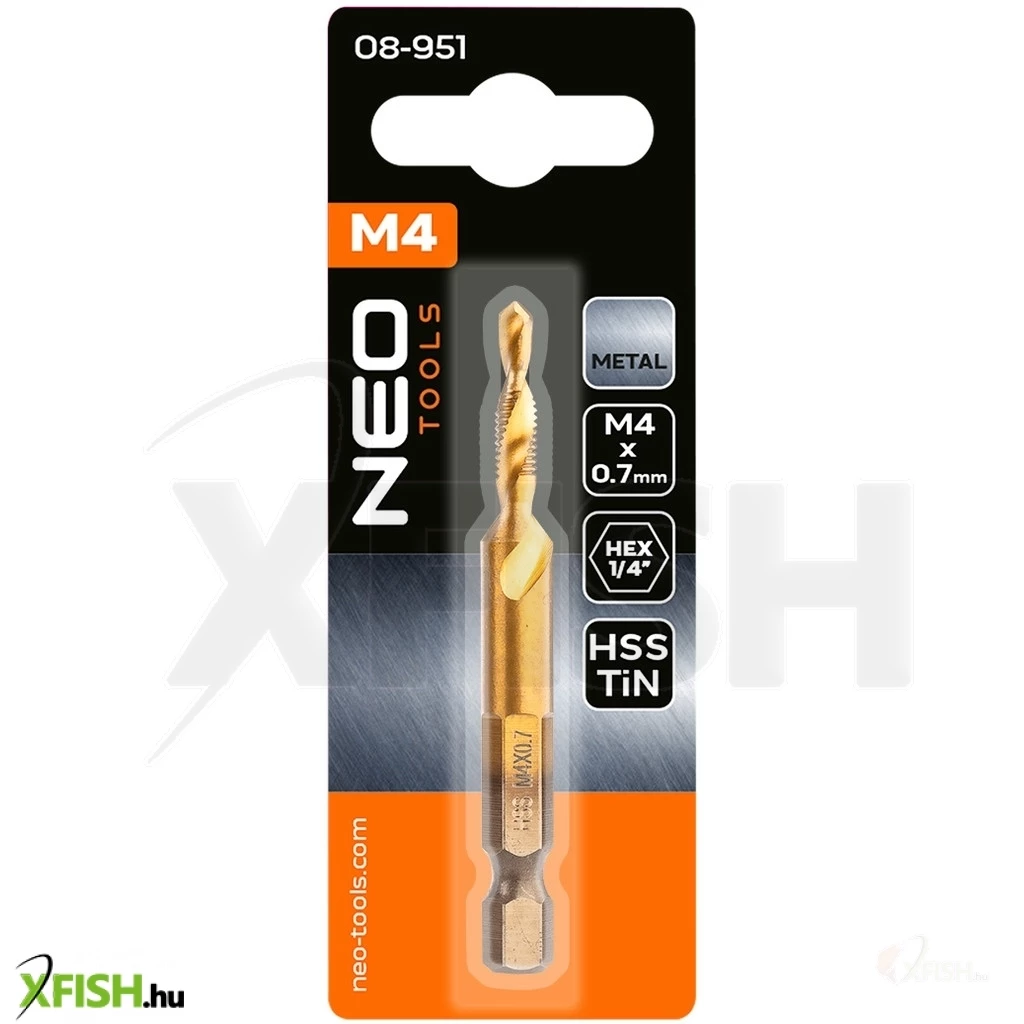KategóriákKategóriákJárműfelszerelés Autós szerszámok Neotools gépi menetfúró, 2az1ben előfúró éllel, hss-titán, m4x0,7mm, hatszög szárral