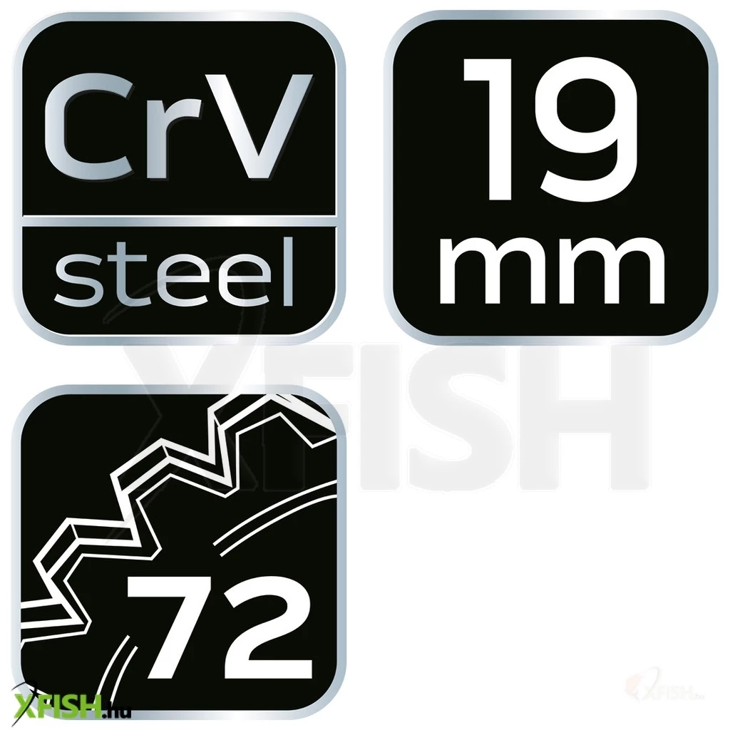 A 72 fogú racsnis mechanizmusának köszönhetően a kulcs minimális mozgással is képes biztosítani a szükséges erőt, ezáltal elősegíti a gyors és hatékony munkavégzést még szűk helyeken is. A króm-vanádium acél a kulcs borításaként kiemelkedő tartósságot és szilárdságot biztosít, így ez a szerszám hosszú távon is megbízható marad, még a legigényesebb környezetben is.