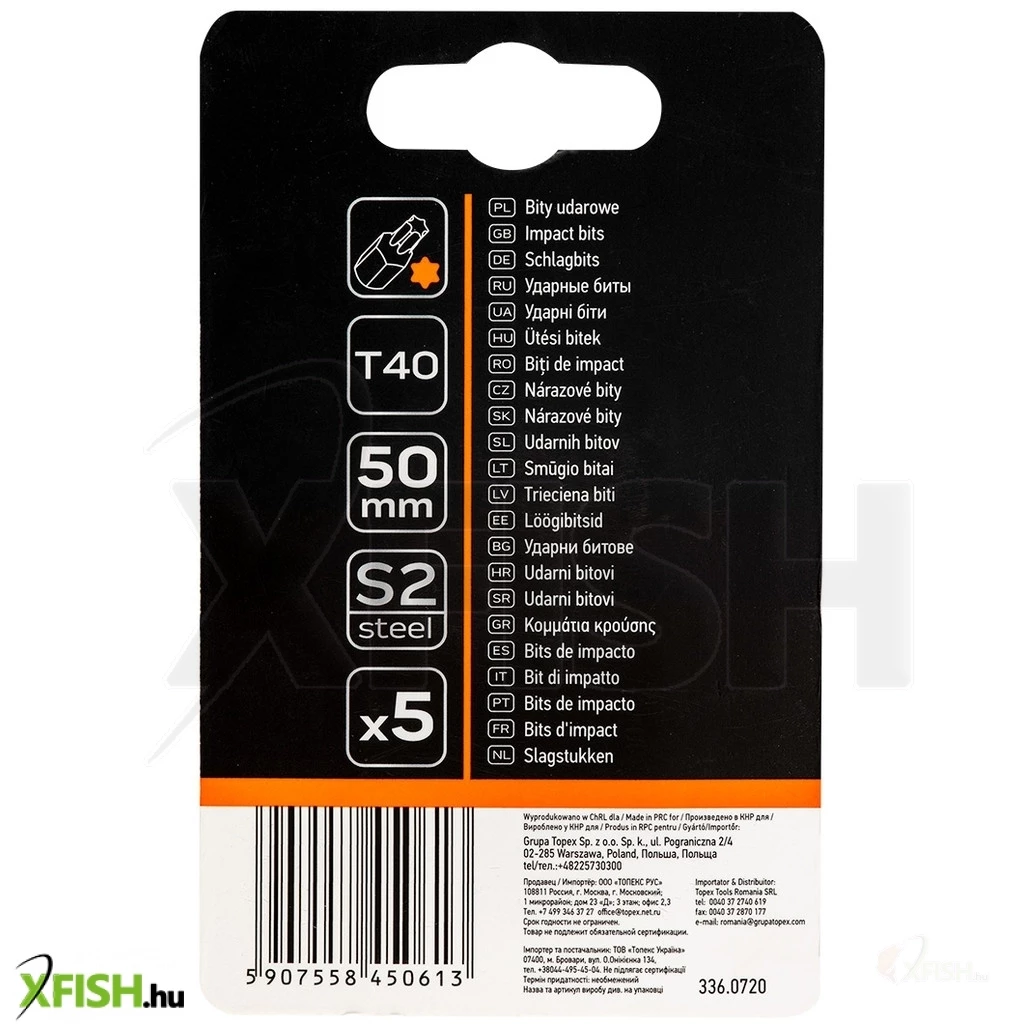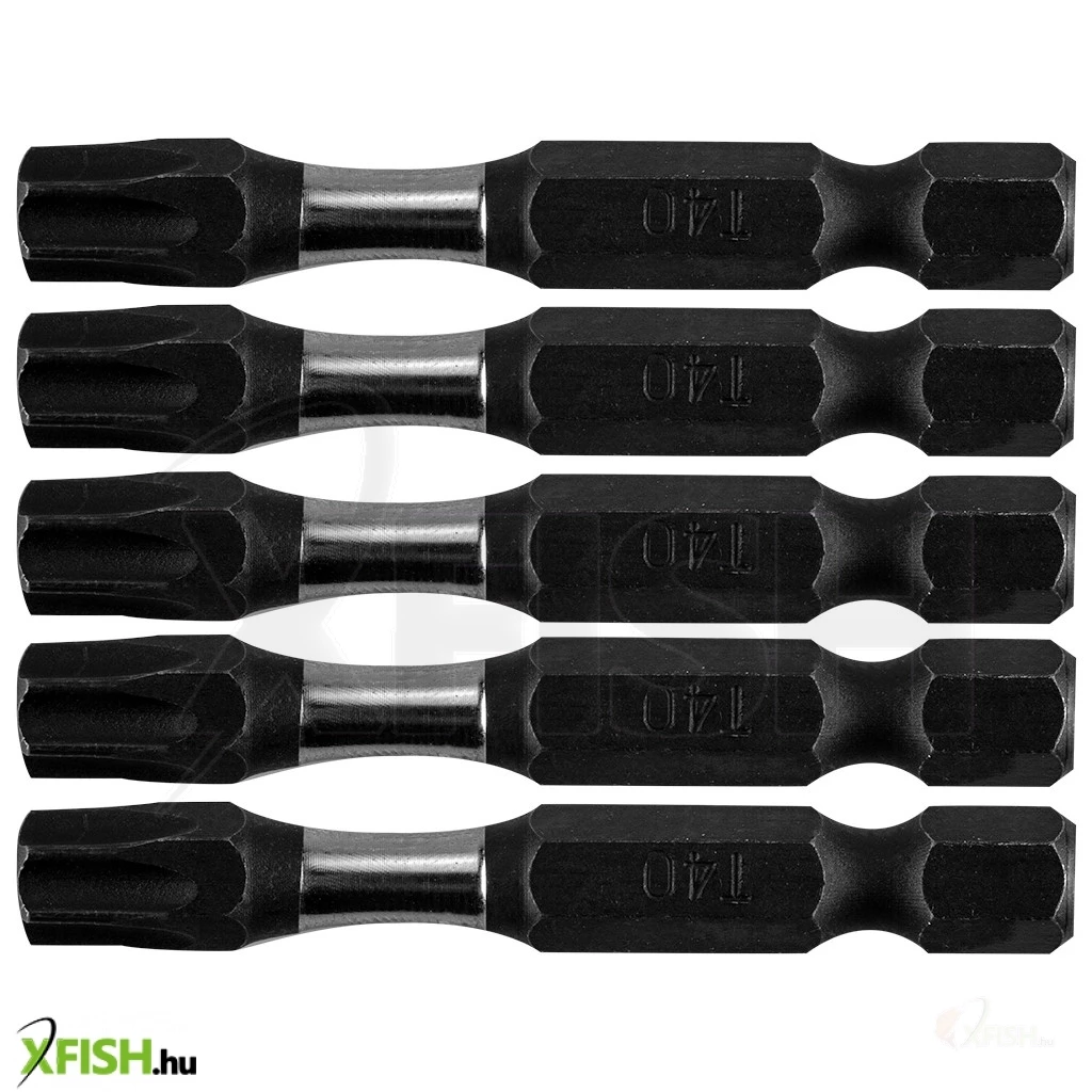 A bitkészlet összesen öt darab, T40 típusú ütvecsavarozó bitet tartalmaz, amelyek különösen jól illeszkednek az 1/4"-os csavarbehajtókhoz. A kiugrásgátló rendszer biztosítja, hogy a bitek stabilan a helyükön maradjanak, megakadályozva ezzel a kicsúszást, ami különösen fontos a folyamatos és gördülékeny munkavégzés során.