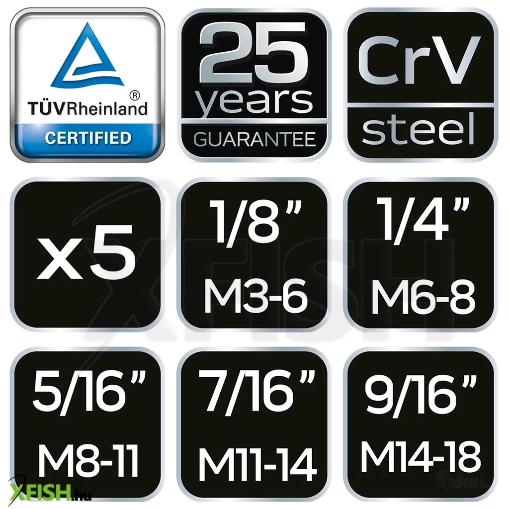 Ez a törtcsavar-kiszedő készlet a következő méretekben érhető el, így biztosítva, hogy mindig a megfelelő eszközzel végezheti munkáját: