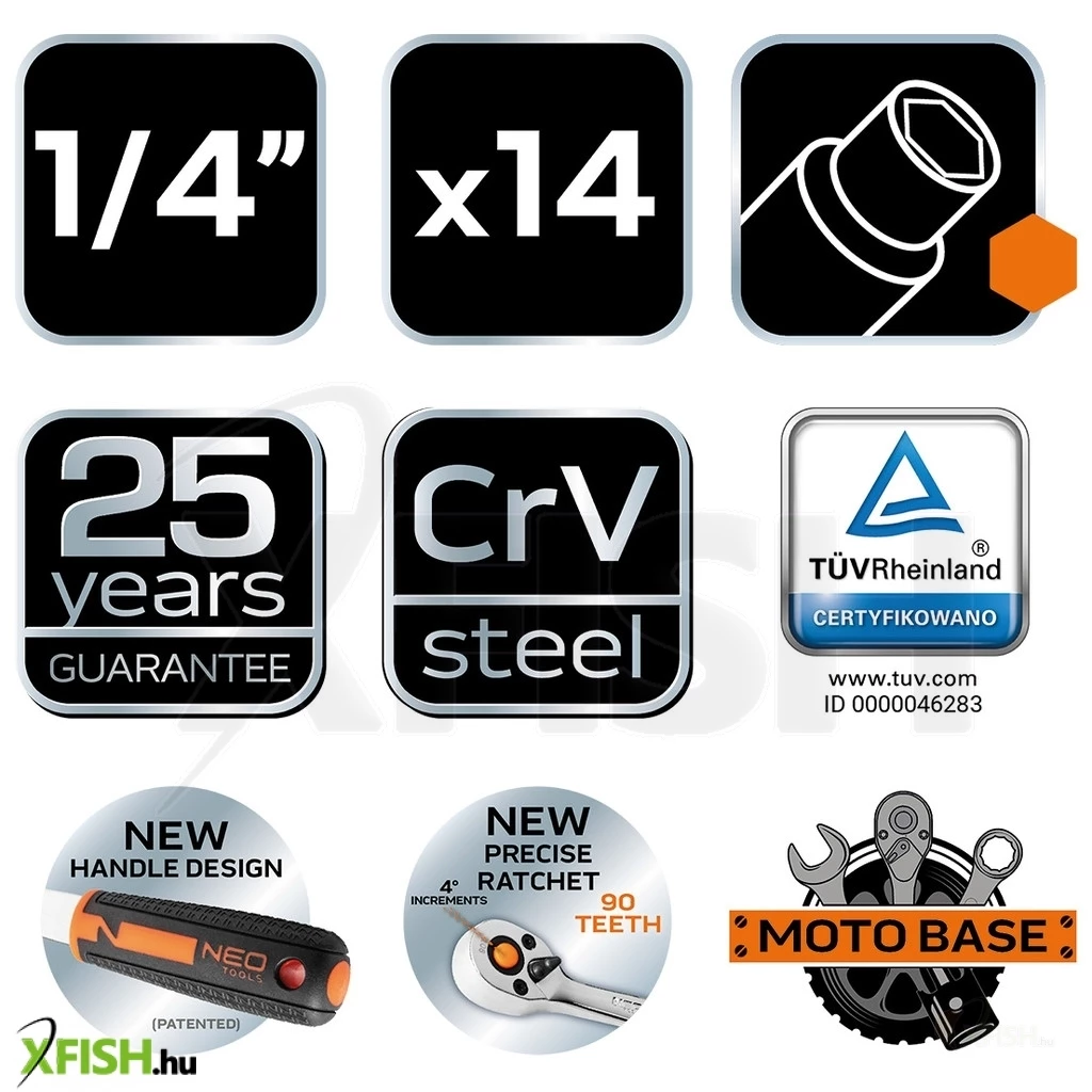 KategóriákKategóriákKerti szerszámok, eszközök Kulcsok Neotools dugókulcskészlet 14db, 1/4