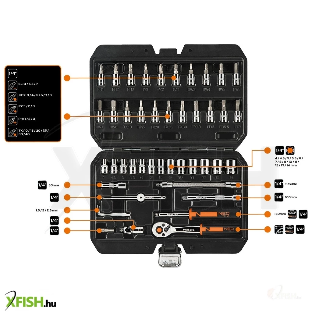 KategóriákKategóriákKerti szerszámok, eszközök Kulcsok Neotools dugókulcskészlet 1/4, 46db