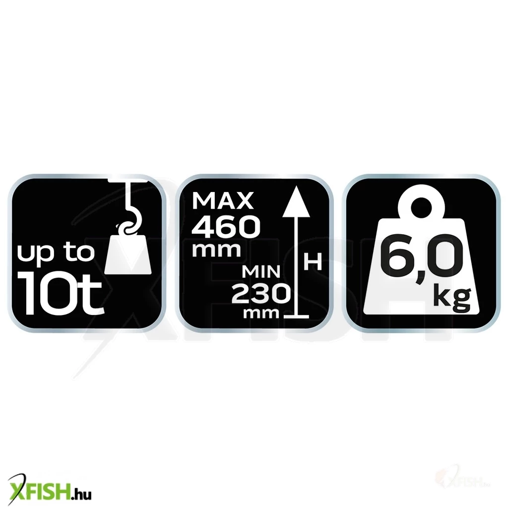 A palackemelő kimagasló teherbírása, amely akár 10 tonnát is felemel, biztosítja, hogy a legnehezebb járművek is könnyedén kezelhetők. Az eszköz hidraulikus rendszere precíz és könnyű emelést tesz lehetővé, ami a balesetmentes és hatékony munkavégzés fontos eleme. Az állítható emelési tartomány 230 mm-től 460 mm-ig terjed, így változatos munkaterületeken is alkalmazható, legyen szó gépjárművek javításáról vagy karbantartásról.