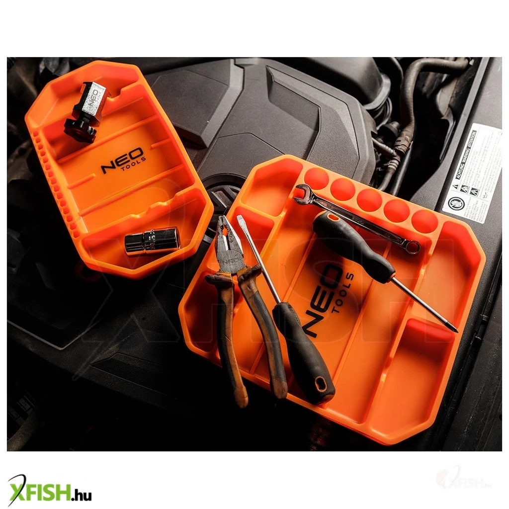 A Neotools szerszámtálca egy ideális választás mindazoknak, akik szeretik rendezett körülmények között tartani a munkaterületüket, legyen szó halászfelszerelésről, szerelési munkálatokról, vagy bármilyen barkácsprojektről. Az innovatív szilikon kialakításnak köszönhetően ez a szerszámtálca nemcsak tartós, hanem rugalmas is, amely tökéletesen illeszkedik minden műhelyben vagy garázsban. Rendkívül praktikus az elrendezése, ami megkönnyíti a kisebb eszközök, alkatrészek, szerelékek rendezettségét; így mindig kéznél lesz minden, amire csak szüksége van.