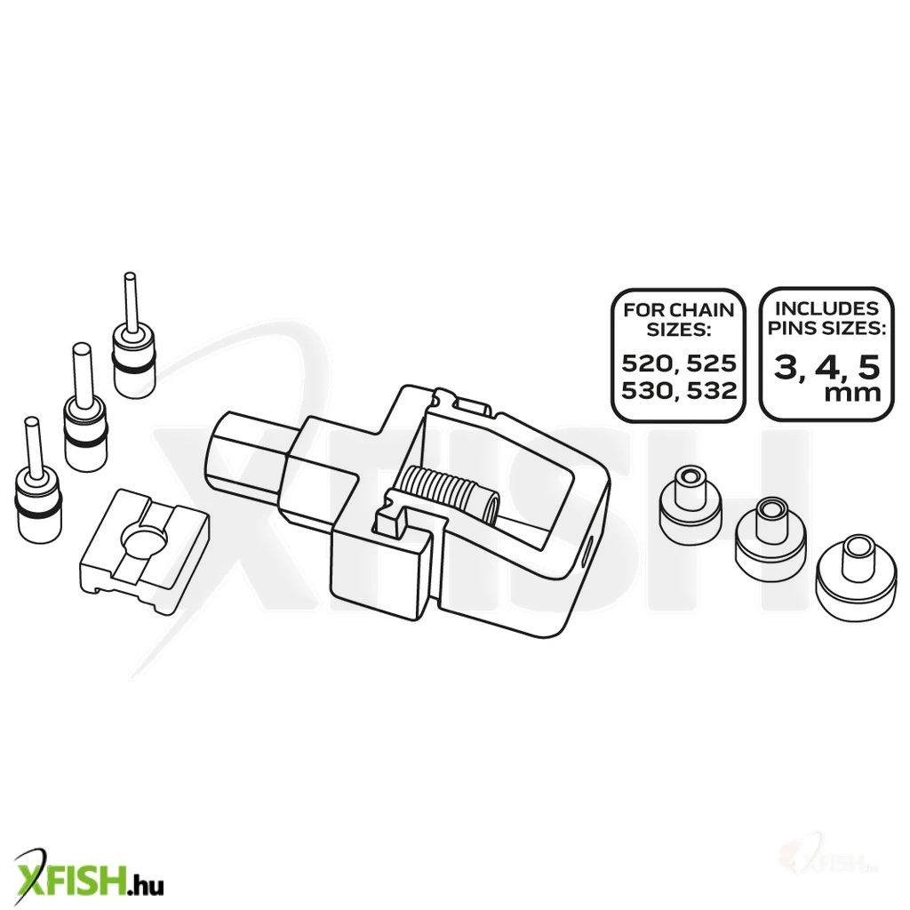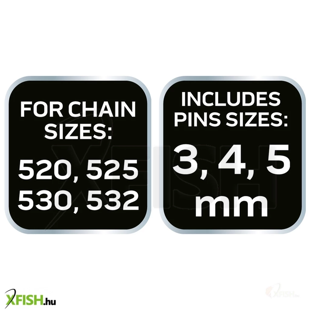 A készlet univerzális foglalatrendszere rugalmasságot biztosít, lehetővé téve különböző típusú és méretű láncok bontását és szerelését. A precíziós tervezés biztosítja, hogy a láncszemek gond nélkül illeszkednek egymáshoz, csökkentve az anyagkárt és garantálva a végeredmény tökéletes illeszkedését.