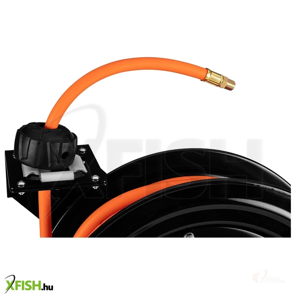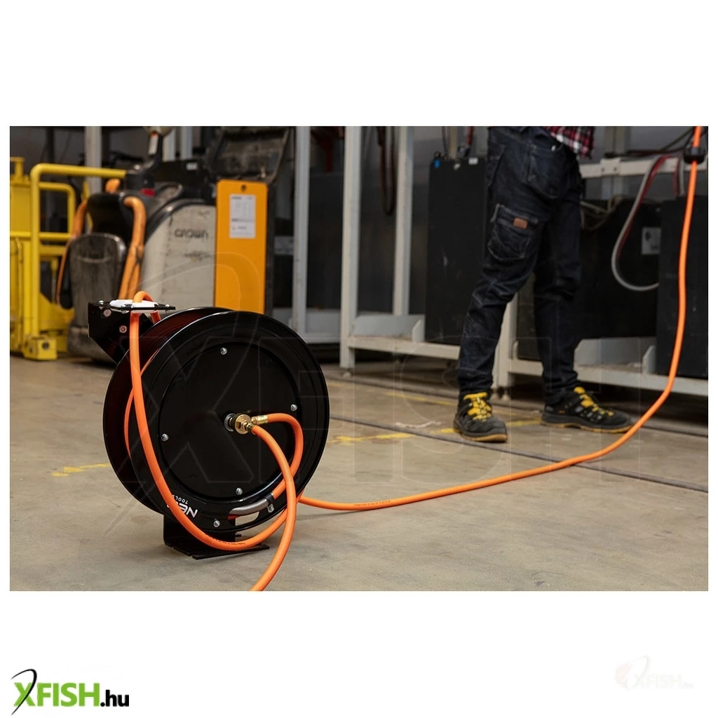 A Neotools pneumatikus tömlődob egy kiváló minőségű eszköz, amelyet kifejezetten nagy igénybevételű munkafolyamatokhoz terveztek. A fém konstrukció nemcsak tartósságot biztosít, hanem ellenáll a mindennapi használat során fellépő mechanikai hatásoknak is, így hosszú távú megoldást kínál a professzionális felhasználók számára. Az automata mechanizmus megkönnyíti a tömlő kezelését; a sima visszahúzás minimalizálja az erőkifejtést, és gyors, hatékony munkavégzést tesz lehetővé akár intenzív használat mellett is.