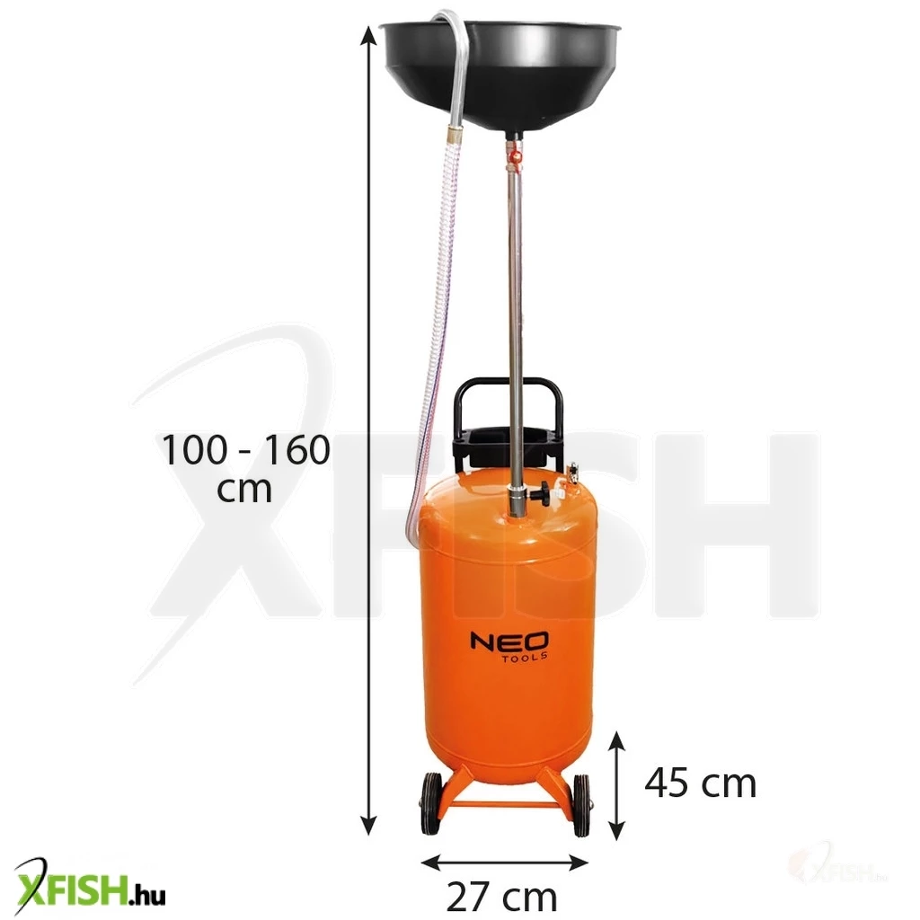 Neotools mobil olajleeresztő készülék, gravitációs, leeresztő tál 10l, gyűjtőtartály 70l