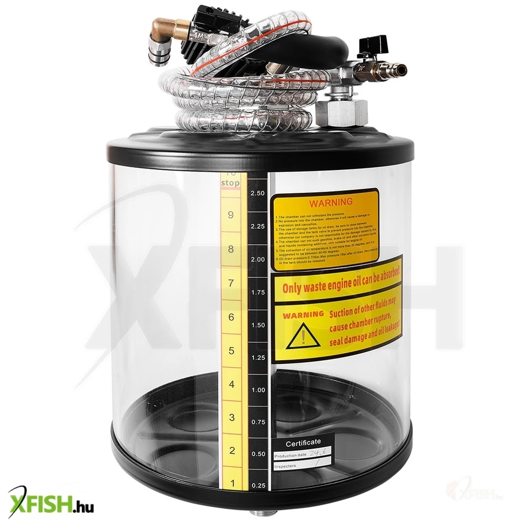 A készülék egyik fő jellemzője a 70 literes gyűjtőtartály, amely bőséges kapacitást biztosít nagymértékű olajmennyiségek kezeléséhez. A készülékhez tartozik egy 10 literes leeresztő tál, amely 1,5 mm vastagságú acélból készült, és 42 cm átmérőjű, így stabil és tartós használatot garantál. Továbbá, a készülék része a 10 literes ellenőrzőhenger, amely fokozatos skálázásával lehetőséget nyújt az olaj minőségének és mennyiségének azonnali értékelésére. Ez elengedhetetlen a precíz és professzionális karbantartási folyamatok során.