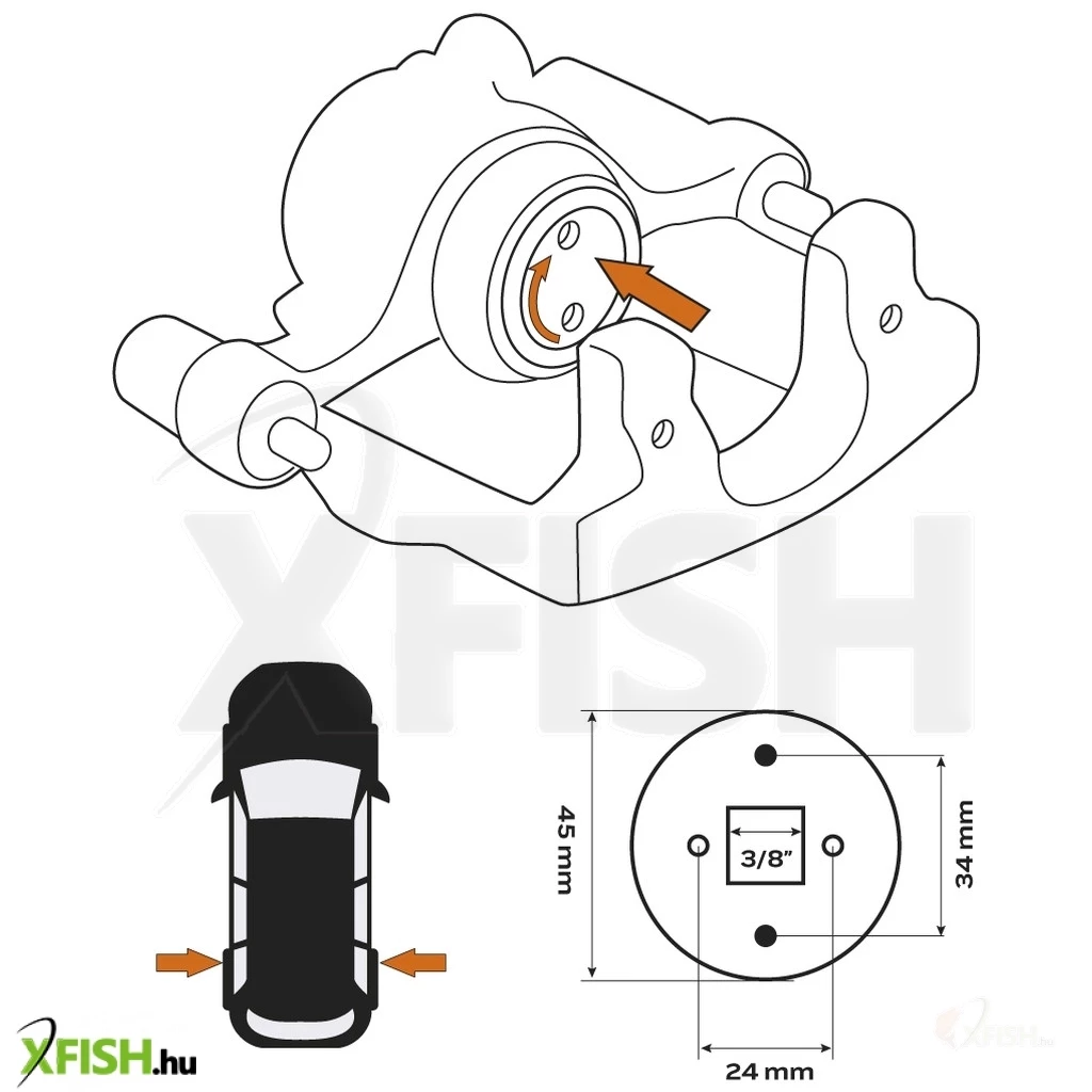 A készlet tartalmaz egy hajtókart, egy kétoldalas adaptert, amely a hátsó féknyergekhez igazodik, és egy támasztólapot a stabilitás érdekében. Az adapter csaptávolsága 24 és 34 mm közötti, hogy a leggyakoribb féknyereg típusokhoz is alkalmazkodjon. A minőségi fémből készült szerszámok nemcsak a tartósságot garantálják, hanem a megbízható működést is a különböző szerelési körülmények között.
