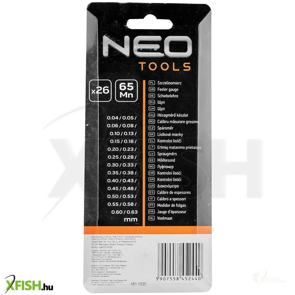 Neotools hézagmérő készlet 26db (0.04 - 0.63mm) 65mn/rozsdamentes acél