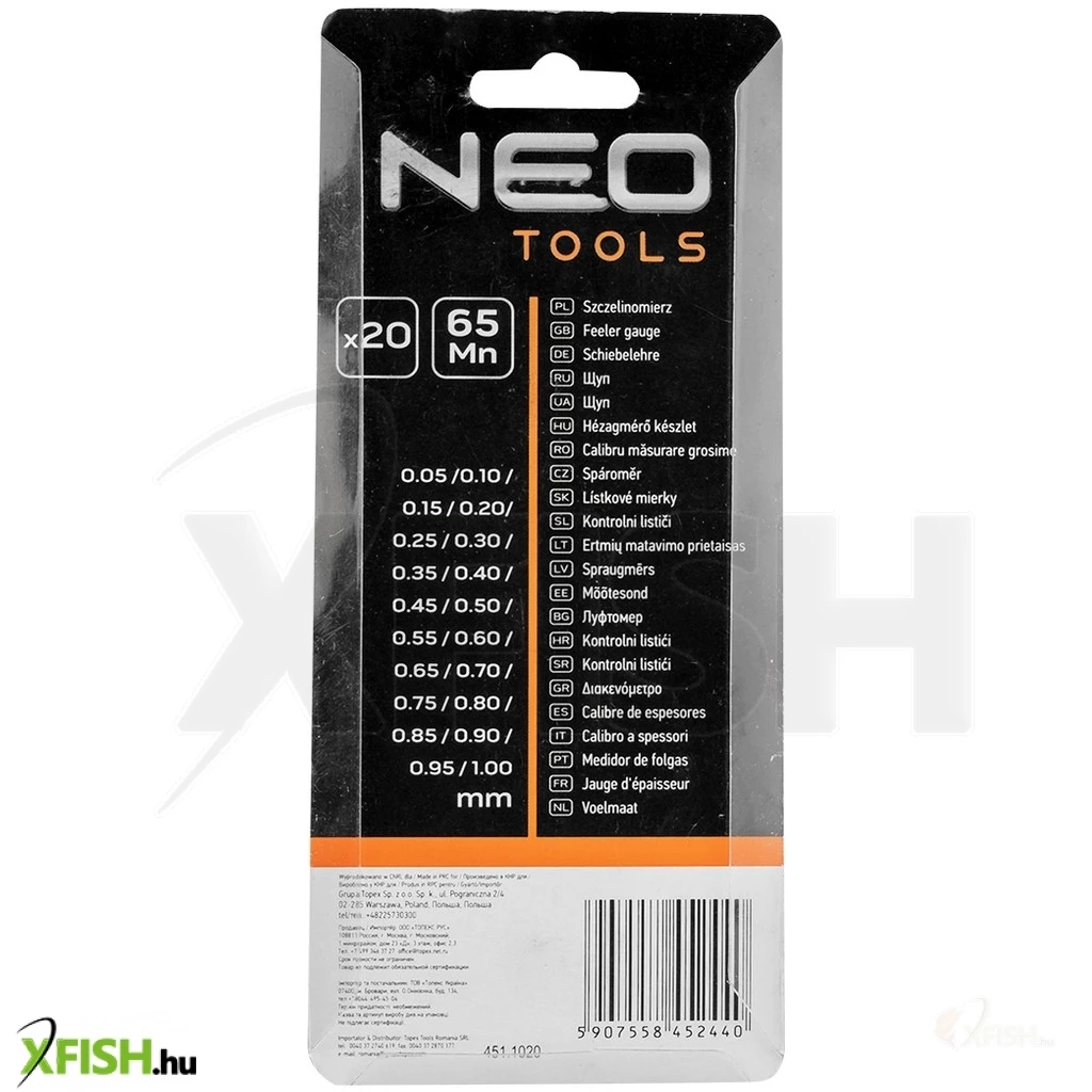 Neotools hézagmérő készlet 20db (0.05 - 1.0mm) 65mn/rozsdamentes acél