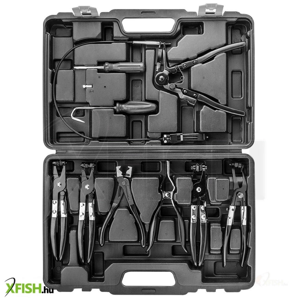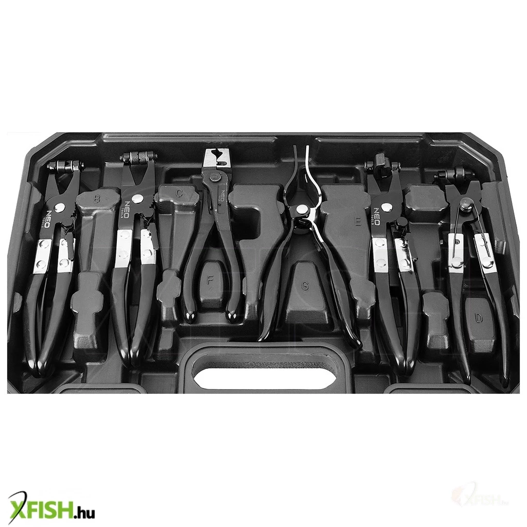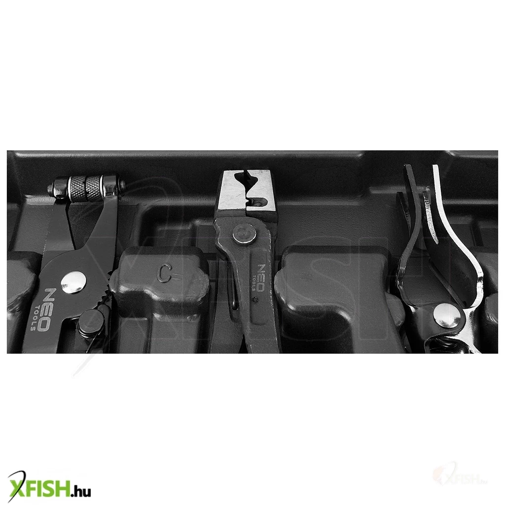 A Neotools 9 darabos bilincsfogó készlete ideális professzionális műhelyek és autószervizek számára, hiszen sokféle bilincs típushoz kínál megoldást, beleértve a bonyolultabb szerelési feladatokat is. Ez a készlet nemcsak a szerszámok sokféleségével, hanem praktikus csomagolásával is kiemelkedik, hiszen minden eszköz kényelmesen elfér a mellékelt kofferben.
