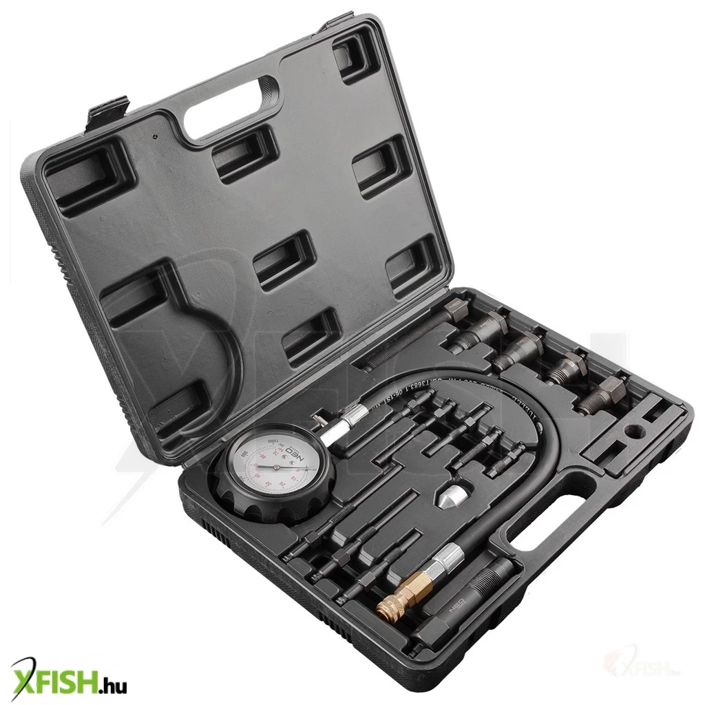 A Neotools kompresszió mérő készlet diesel motorokhoz tervezett, 16 darabos professzionális eszköz, mely minden szerelőműhely és autószerelő megérdemelt kincse. Ez a készlet egy strapabíró, jól átgondolt mérőeszköz-kombinációt kínál, melynek segítségével a diesel motorok kompresszióját gyorsan és pontosan mérheti.
