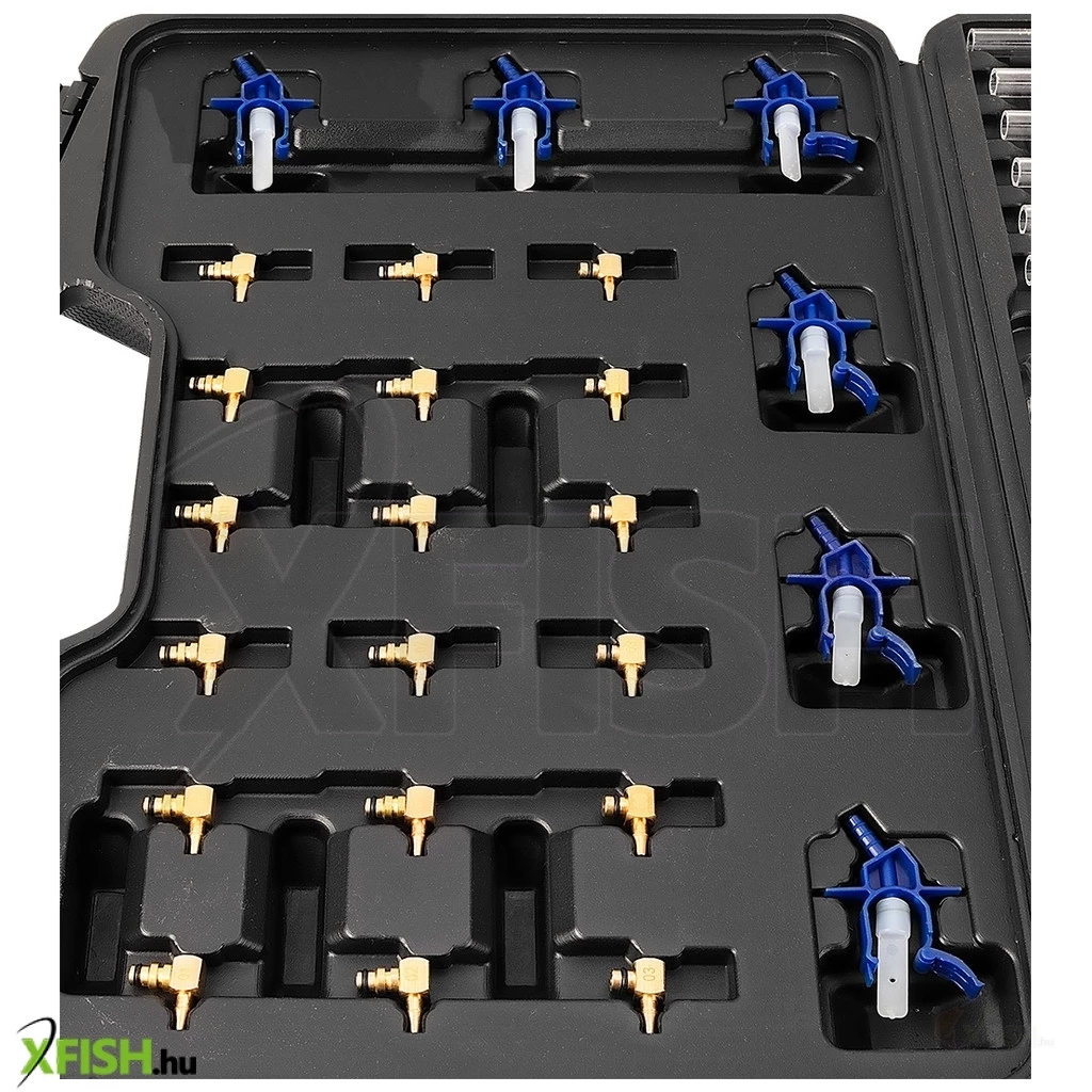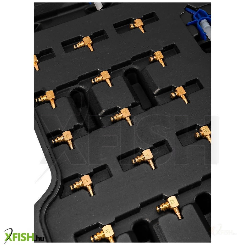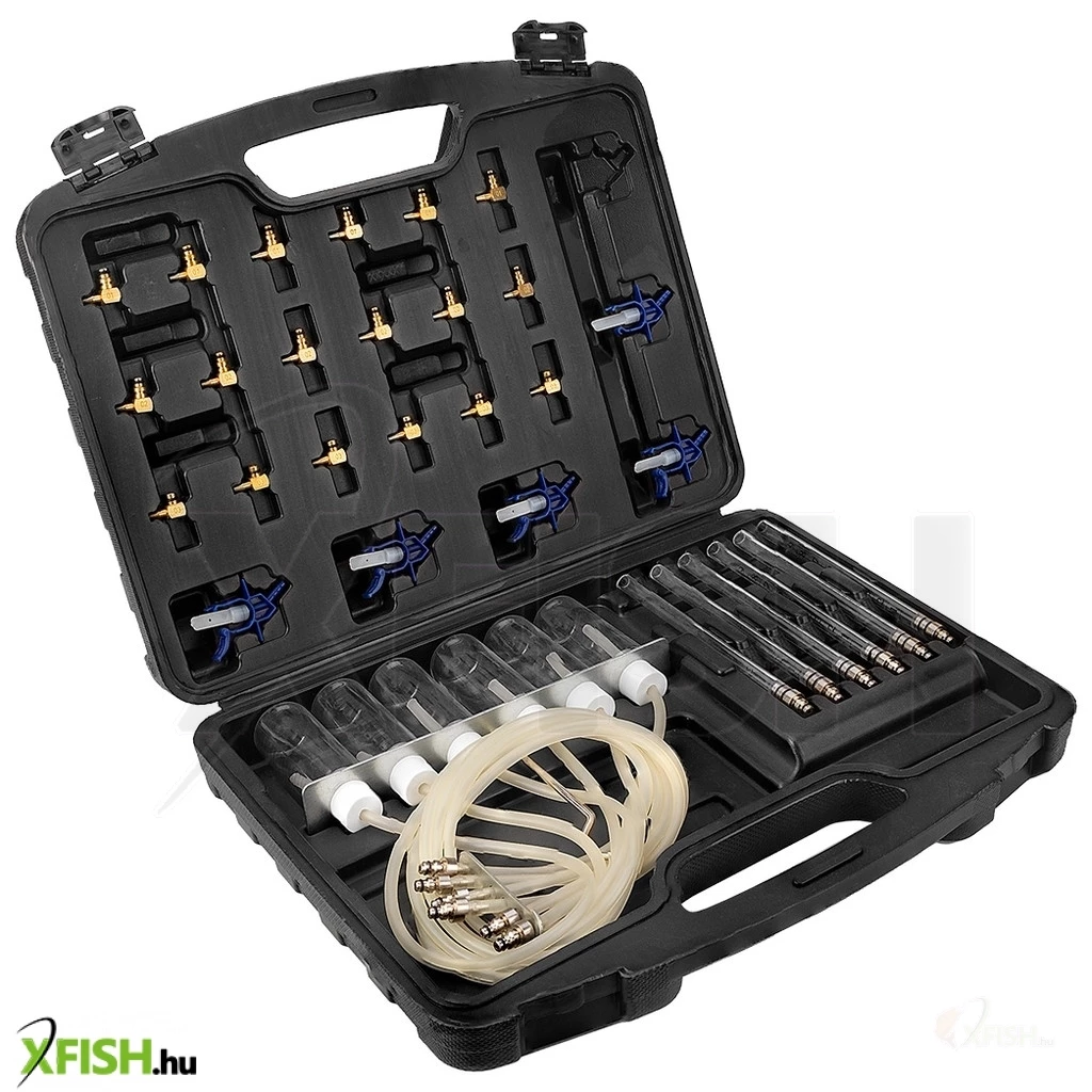 A termék tartalmát tekintve, a készlet hat darab visszafolyási mennyiségmérő poharat, üzemanyagálló, átlátszó tömlőt és manométercsövet tartalmaz, biztosítva a részletes és pontos diagnosztikai munkát. A készlet megbízható működéséhez hozzájárul a hat darab, különféle rendszerű csatlakozó, amelyek a fenti márkák injektoraihoz lettek tervezve, és nyomásálló csövekkel együtt garantálják a biztonságos csatlakoztatást és használatot.