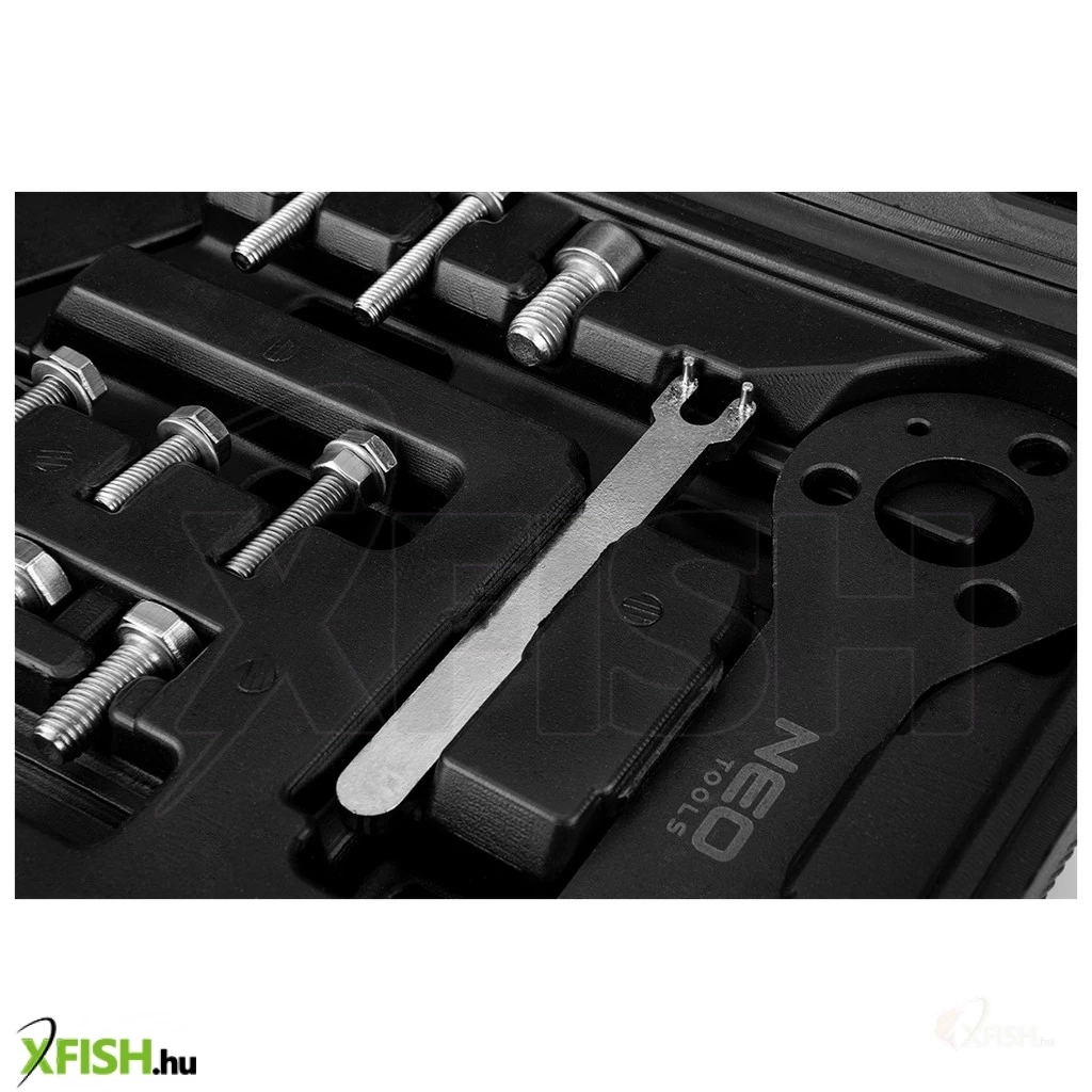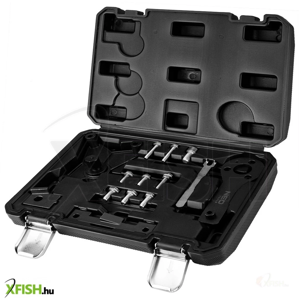 A Neotools vezérműtengely blokkoló készlet professzionális megoldást kínál a Fiat és GM benzinmotorok vezérműtárcsájának pontos beállítására és blokkolására. Az autómotorok megfelelő karbantartásához és szervizeléséhez elengedhetetlen eszköz, amely a jármű motorjának hatékony és biztonságos üzemeltetését segíti elő. A készlet minden szükséges elemmel rendelkezik, amire a vezérműtárcsák rögzítéséhez szüksége lehet, így megbízható partnere lesz minden autószerelőnek és barkácsolónak. A készlet elemei egy praktikus koffert foglalnak el, amely könnyű szállítást és tárolást biztosít, miközben az összes eszközt rendezetten egy helyen tartja.