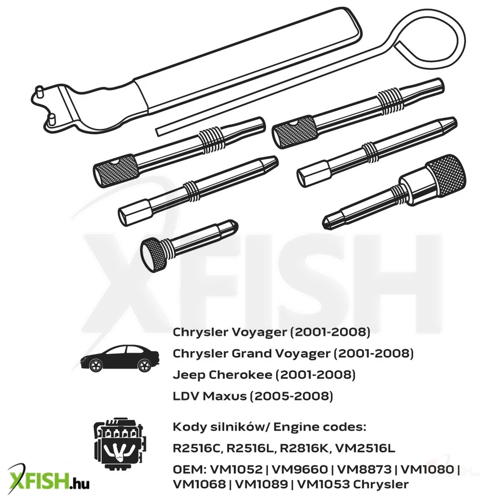 A Neotools vezérműtengely blokkoló készletet kifejezetten a Chrysler és Jeep dízelmotorokhoz fejlesztették ki, így ideális választás a 2001 és 2008 között gyártott Chrysler Voyager, Chrysler Grand Voyager, Jeep Cherokee, valamint 2005 és 2008 között gyártott LDV Maxus járművek szerelői számára. A készlet a vezérműtárcsa blokkolásához szükséges legfontosabb elemeket tartalmazza, amelyek elengedhetetlenek a motor pontos beállításához és blokkolásához.