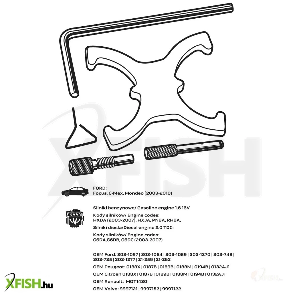 A készletben található egyedi elemek gondoskodnak arról, hogy a szerelési munkálatok zökkenőmentesen menjenek, minimalizálva ezzel az esetleges géphibákból eredő leállások idejét. Mivel a termék kompatibilis a Ford Focus, C-Max, és Mondeo modellekkel 2003 és 2010 közötti évjáratokban, így széleskörű alkalmazási lehetőséget biztosít. A benzinmotorok tekintetében a 1.6 16V-s motorok motorkódjai, mint a HXDA (2003-2007), HXJA, PNBA és RHBA, míg a dízelmotorok esetében a 2.0 TDCi-s motorok G6DA, G6DB és G6DC (2003-2007) motorkódjai fedezhetők fel az alkalmazási listában.