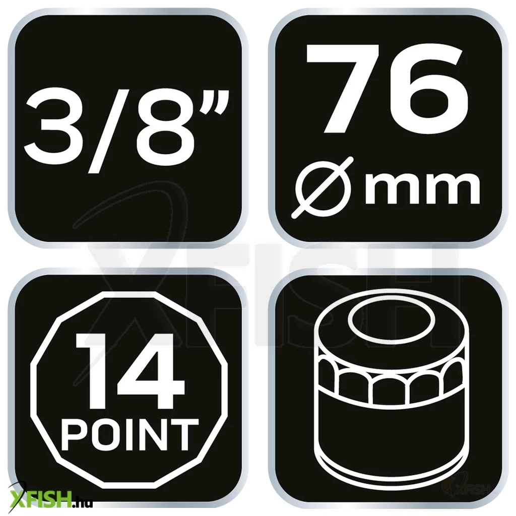 Neotools olajszűrő kulcs 76mm, 14 pontos, 3/8 kulcsnyílással