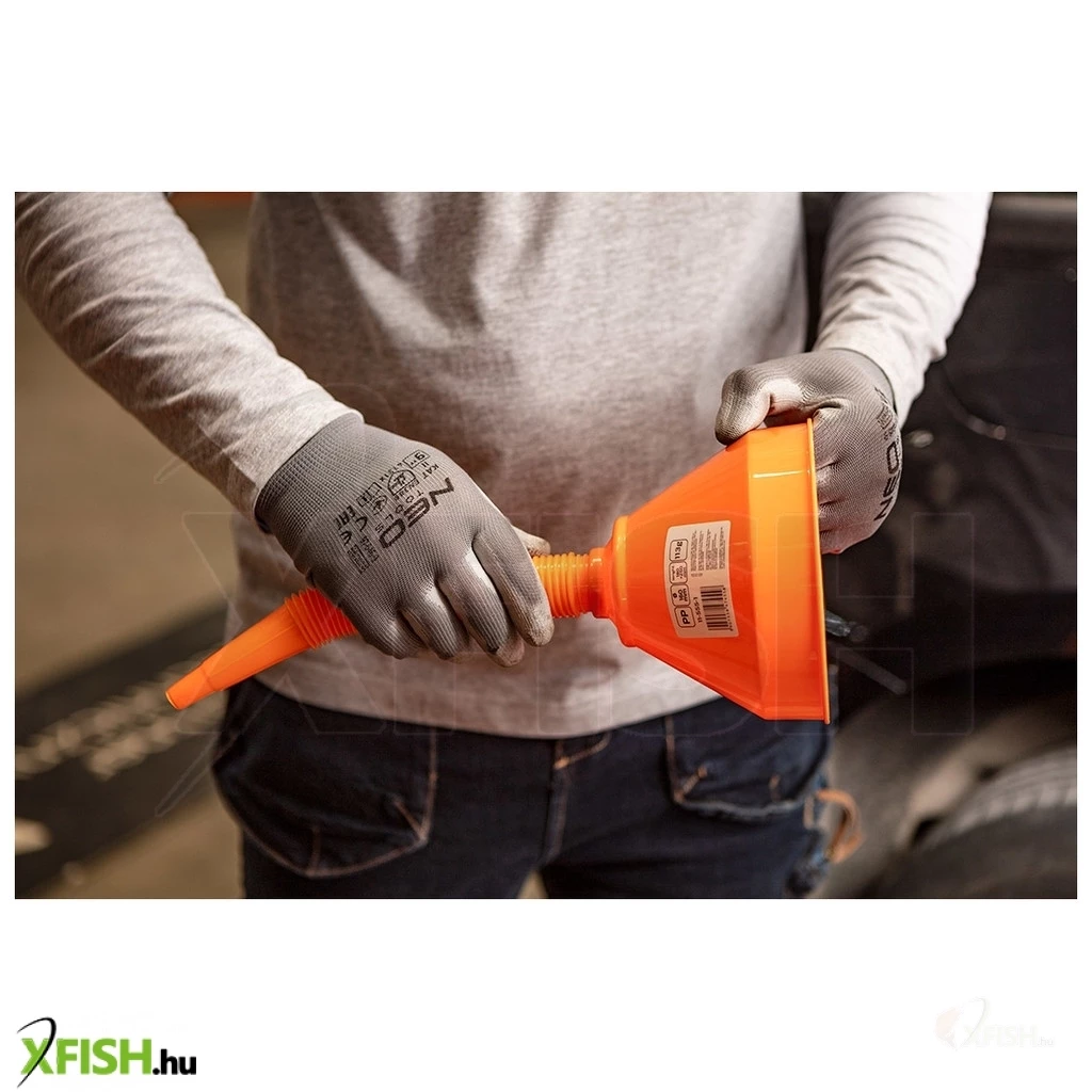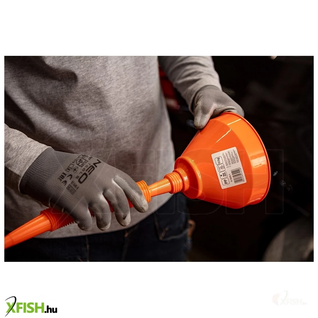 A tölcsér könnyű, ergonomikus fogása lehetővé teszi a kényelmes használatot mindennemű összetett feladatnál is. Az anyagválasztás stabil szerkezetet biztosít, amely ellenáll a vegyi anyagoknak, így bátran használható különböző folyadékok, például motorolaj, hűtőfolyadék vagy szélvédőmosó töltésére.