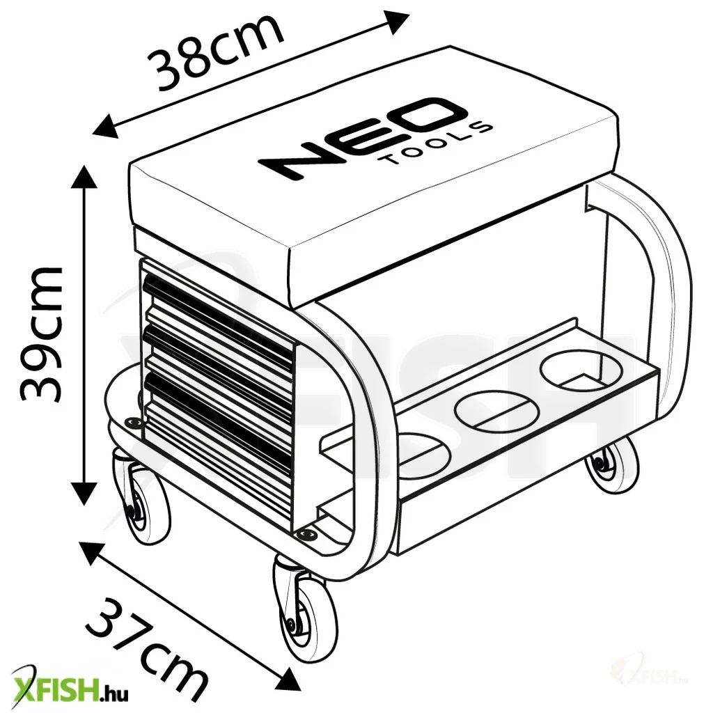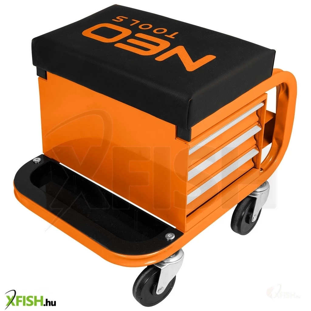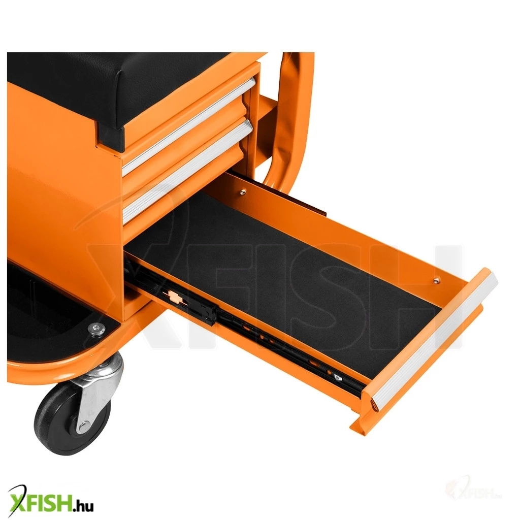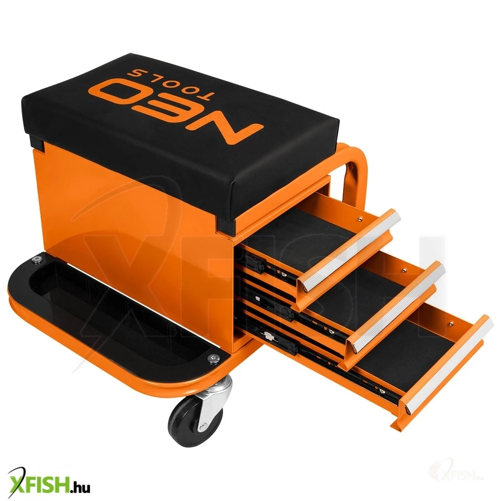 Neotools szerelőszék, fém szerkezetű, kerekekkel, szerszámfiókokkal