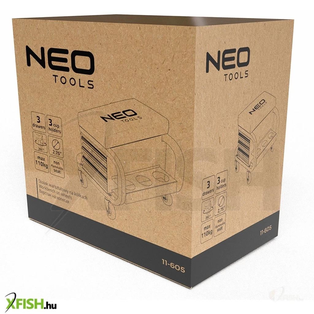A Neotools szerelőszék a garázs minden autószerelőjének, illetve barkácsolónak nélkülözhetetlen eszköze. Ez a masszív, fém szerkezetű szék biztosítja a kényelmes munkavégzést akár hosszabb ideig tartó szerelések során is. Az ergonomikus kialakítás miatt a szerelési folyamatok továbbá könnyedén elvégezhetők, hiszen a szék kerekekkel felszerelt, így könnyedén mozgatható a munkaterületen belül.