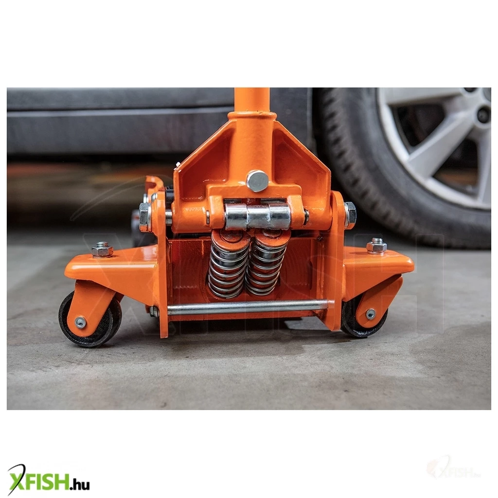 A praktikumot fokozza, hogy az emelő kerekekkel van felszerelve, ami az eszköz mozgatását gyerekjátékká teszi, valamint lehetővé teszi az emelő könnyű betolását a gépkocsi alá. Az emelő hosszú karja és a precíz vezérlést biztosító két golyós szelep lehetővé teszi a felhasználó számára a pontos emelési és leengedési folyamatot, amely elengedhetetlen a munkavégzés során.