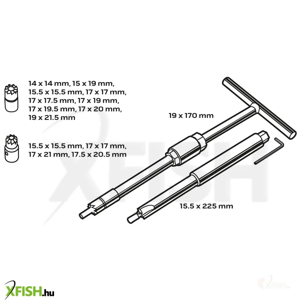 A gondosan kialakított lapos dörzsárak méretei 14 x 14 mm-től egészen 19 x 21.5 mm-ig terjednek, így könnyedén alkalmazkodnak a legkülönbözőbb fészekméretekhez. A készletben található kúpos dörzsárak további rugalmasságot biztosítanak, például a 15.5 x 15.5 mm-es és a 17.5 x 21.5 mm-es méretekkel. Emellett a készlet tartalmaz egy 19 x 170 mm-es pilótát, amely megkönnyíti a precíz és pontos munkavégzést. A maró eszköz 15.5 x 225 mm-es mérete optimális megoldást kínál a alapos és mély tisztításra. A szett része egy praktikus 2.5 mm-es hatszögkulcs és egy kényelmes T hajtószár is, amelyek hozzájárulnak a gördülékeny munkafolyamathoz.