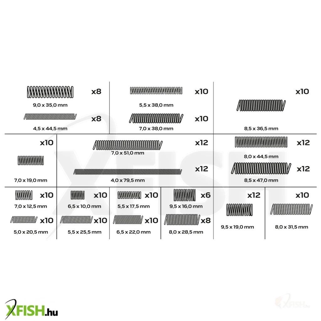 A készletben található rugók különböző átmérőkkel és hosszúságokkal érhetők el, ami biztosítja, hogy mindig megtalálja az adott feladathoz leginkább illeszkedő alkatrészt. A rugók kiváló minőségű acélból készültek, amely nemcsak hosszú élettartamot biztosít, de ellenáll a korróziónak is, így garantálva a tartósságot még a legszigorúbb környezeti feltételek között is. A rugók rugalmas kialakítása segít elnyelni a rezgéseket és csökkenti az alkatrészek kopását, hozzájárulva az autóalkatrészek tartósságához és hatékony működéséhez.