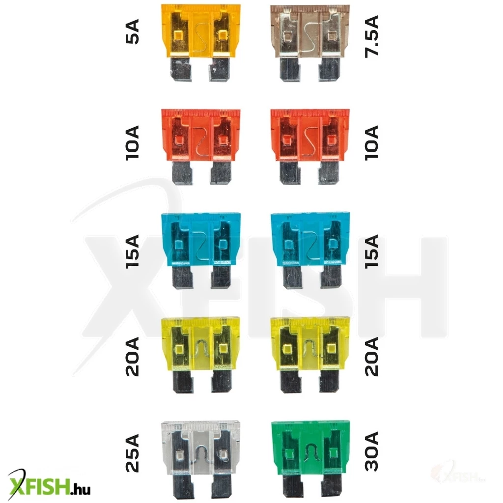 - Különböző áramerősségek: 5A, 7.5A, 10A, 15A, 20A, 25A, 30A