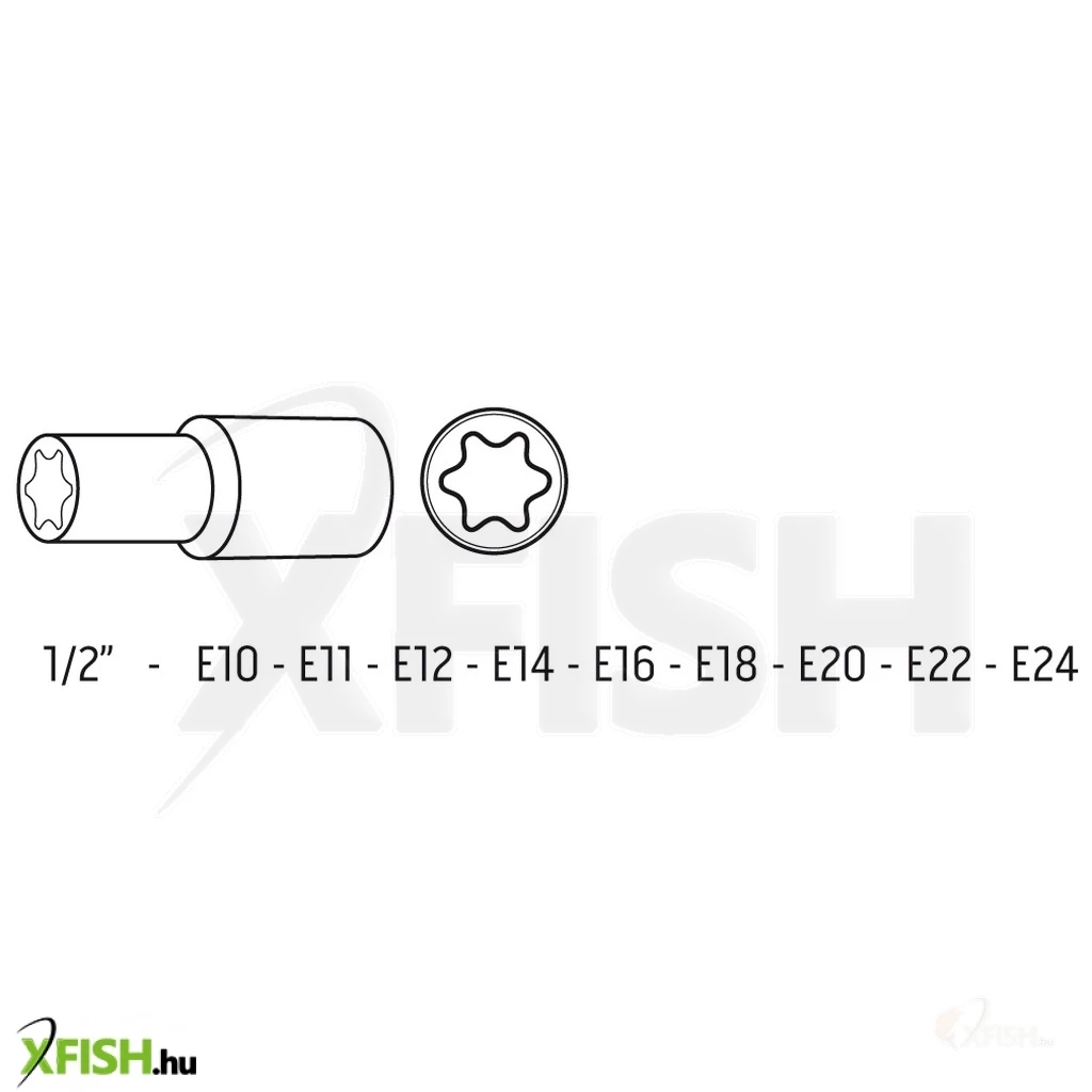 - Torx méretek: E10, E11, E12, E14, E16, E18, E20, E22, E24