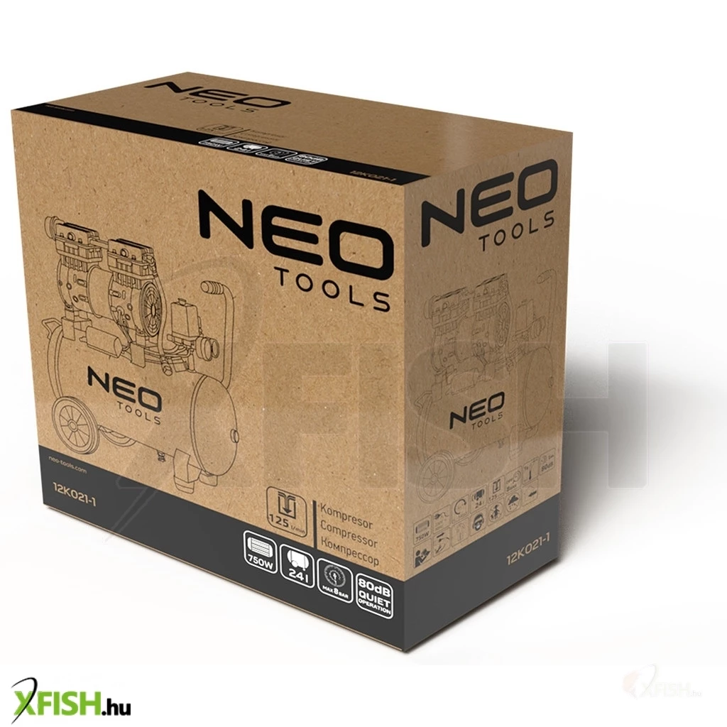 KategóriákKategóriákBarkácsolás, építkezés Kompresszorok Neotools kompresszor, 24l, 8 bar, 125l/min, extra csendes, kefementes motorral, olajmentes, 80db