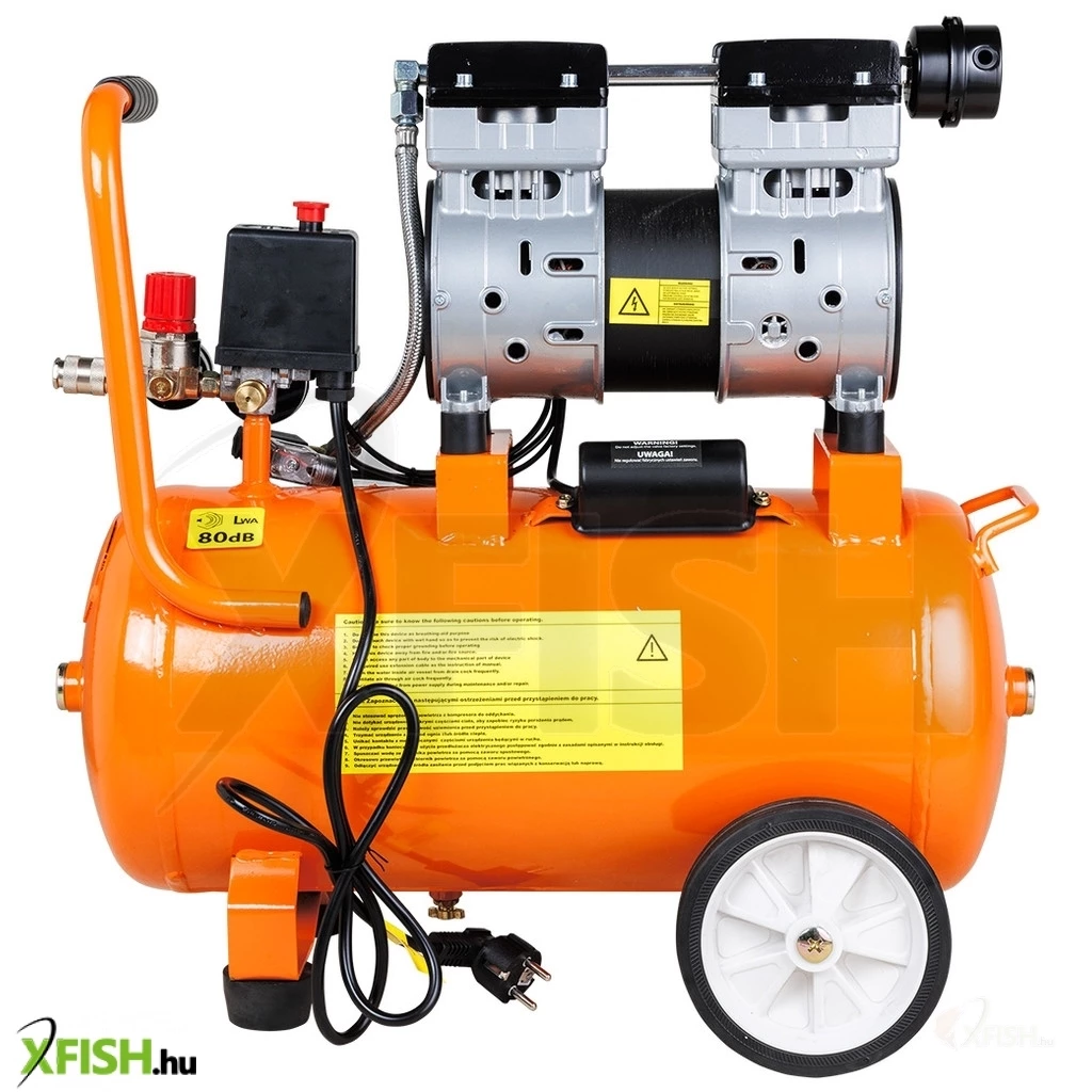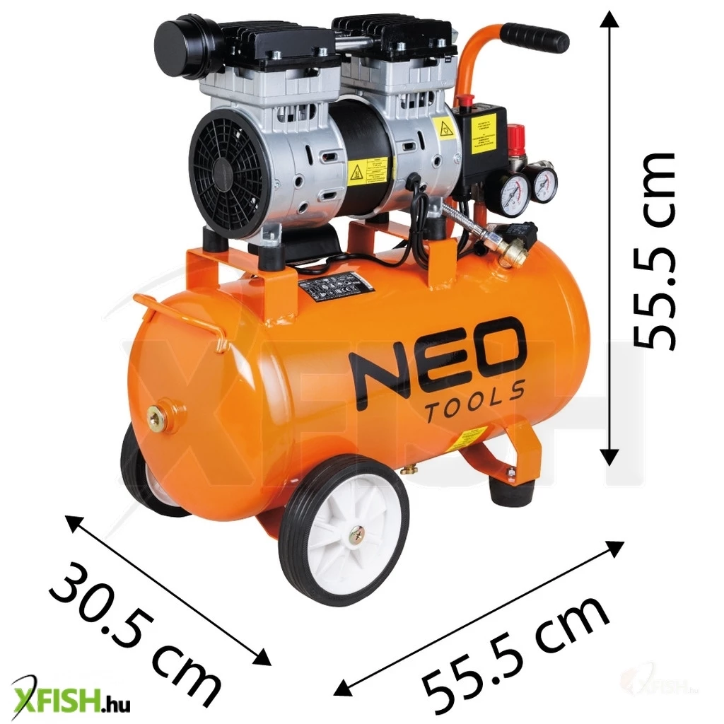 Neotools kompresszor, 24l, 8 bar, 125l/min, extra csendes, kefementes motorral, olajmentes, 80db