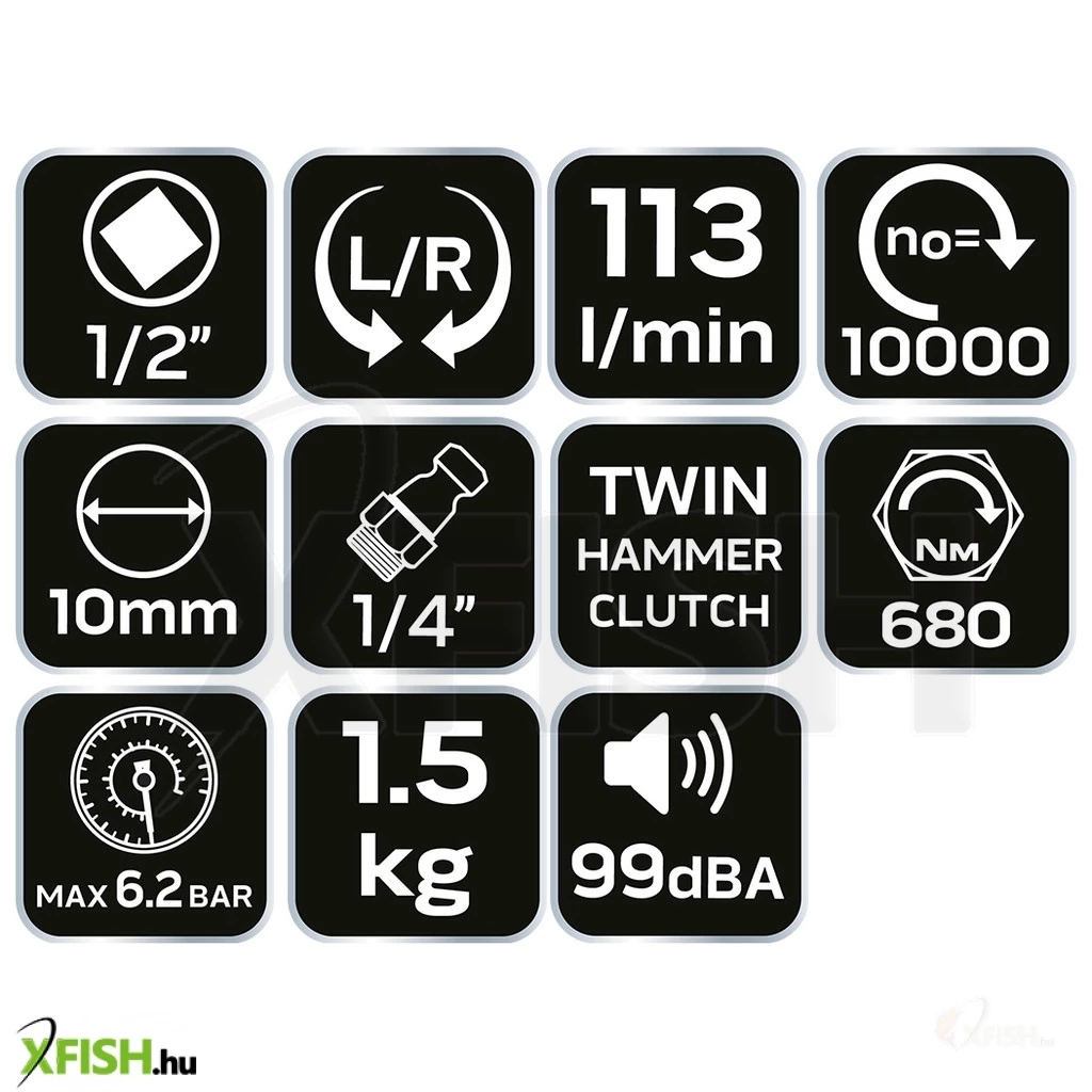 A 680 Nm nyomatékú pneumatikus ütvecsavarozó kiválóan alkalmas közepes és nagy méretű rögzítések kezelésére, míg a kettős kalapácsos ütőrendszer, vagyis a twin hammer mechanizmus, gondoskodik a gyors és hatékony ütési teljesítményről. Ez a rendszer páratlan megbízhatóságot és hosszú élettartamot biztosít, így a szerszám tökéletes választás azoknak, akik mindennapi használat során is maximális teljesítményt várnak el.